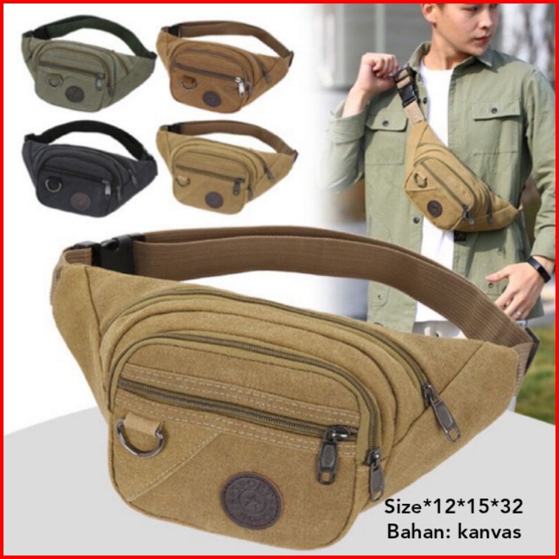 Tas Pinggang Pria Kanvas Waistbag Pria Kanvas Slempang Kanvas Pria