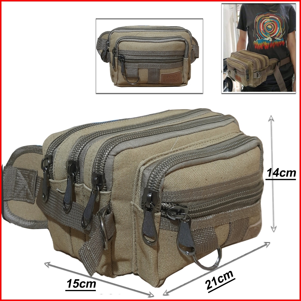 Tas Pinggang Waistbag Pria Polo Change 8911 Kanvas Tebal Urban Style Import