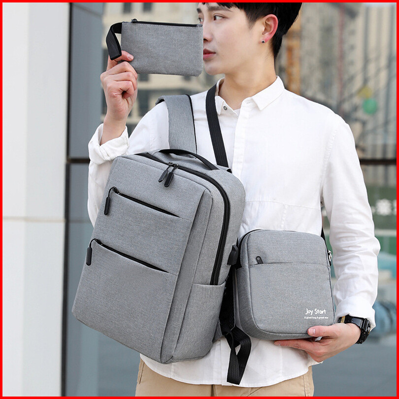 Tas Laptop Ransel 3 In 1 Pouch Selempang Kanvas Untuk Kerja Sekolah Kantor
