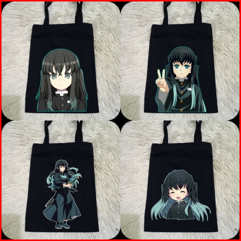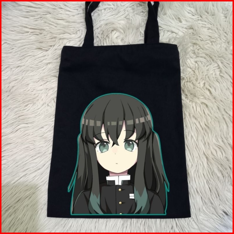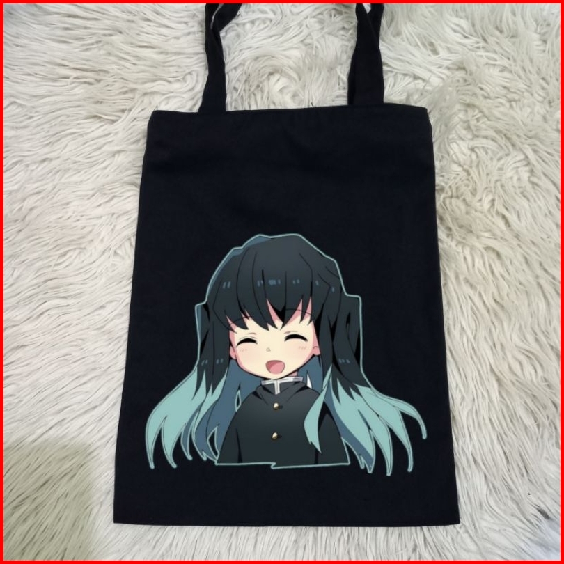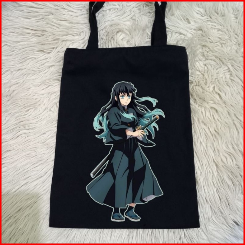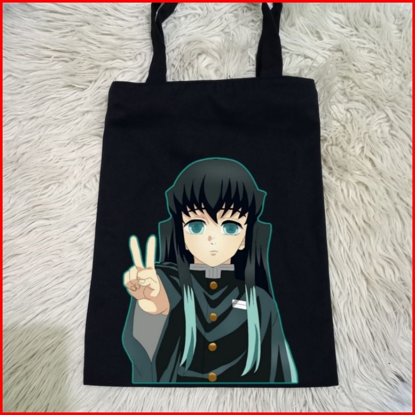 Totebag Hitam Muichiro Anime Demon Slayer Tebal 100 Kanvas Premium Tas Jinjing Hitam Anime Demon Slayer Tas Belanja Moti
