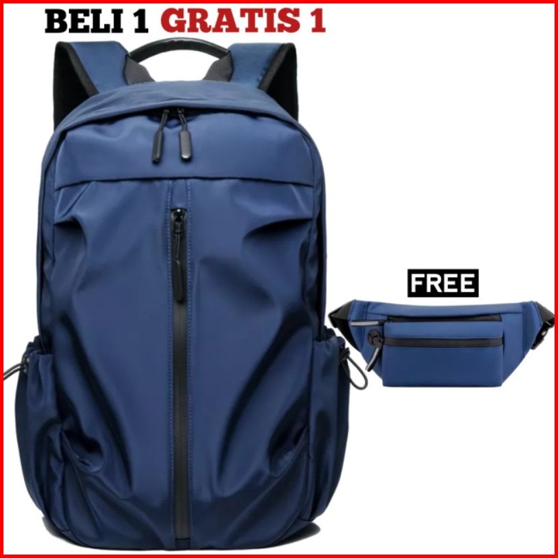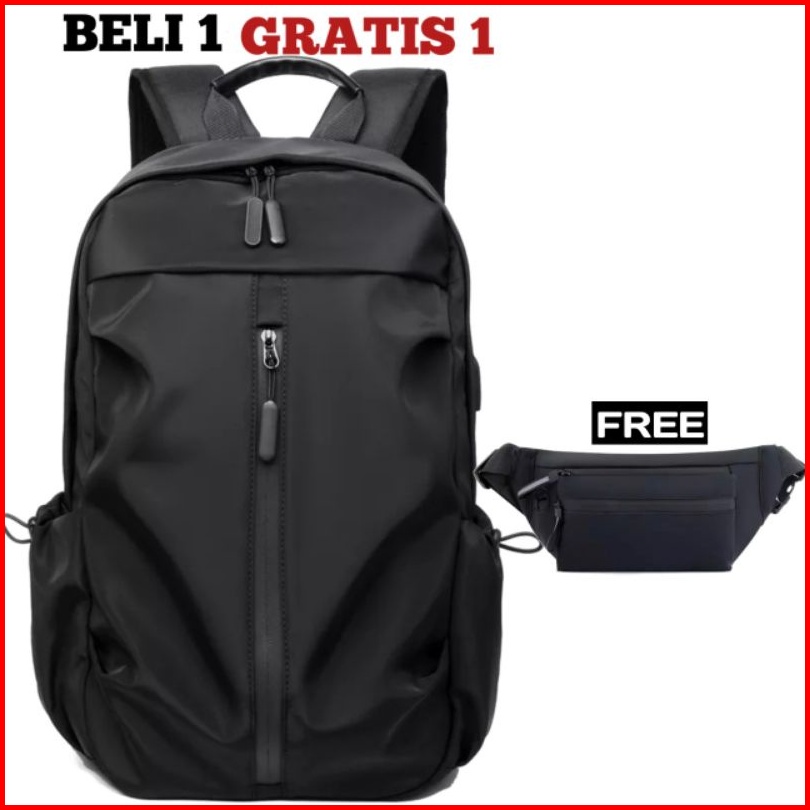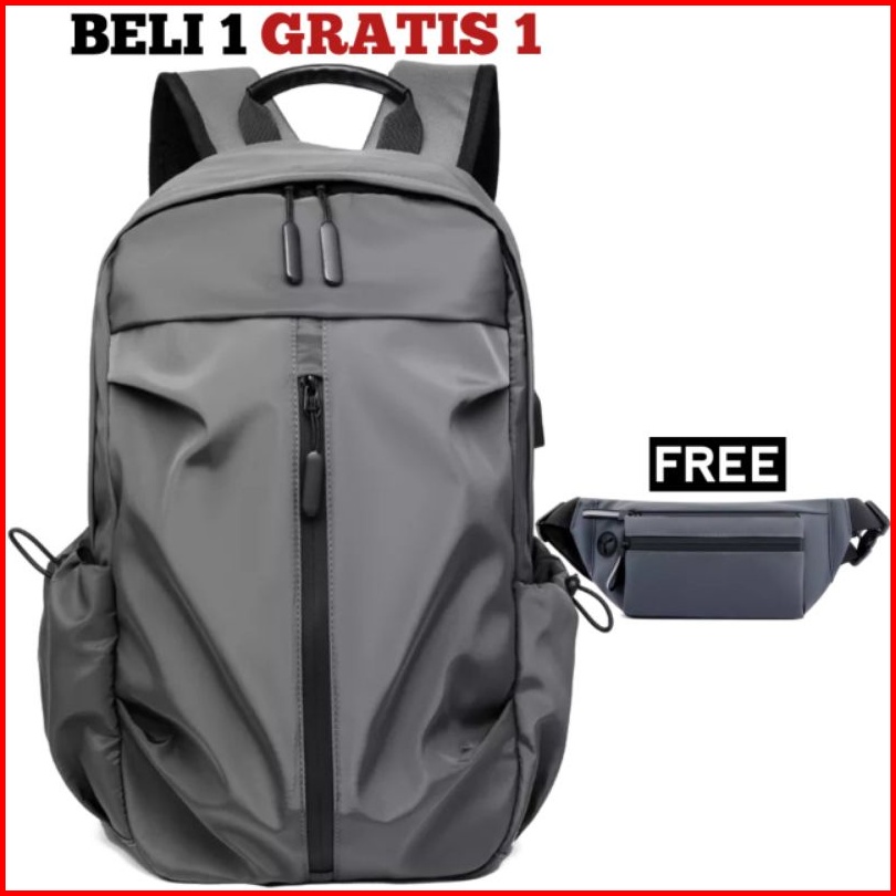 Js Buy 1 Get 1 - Tas Ransel Pria Beli Ransel Punggung Backpack Cowok Free Waistbag