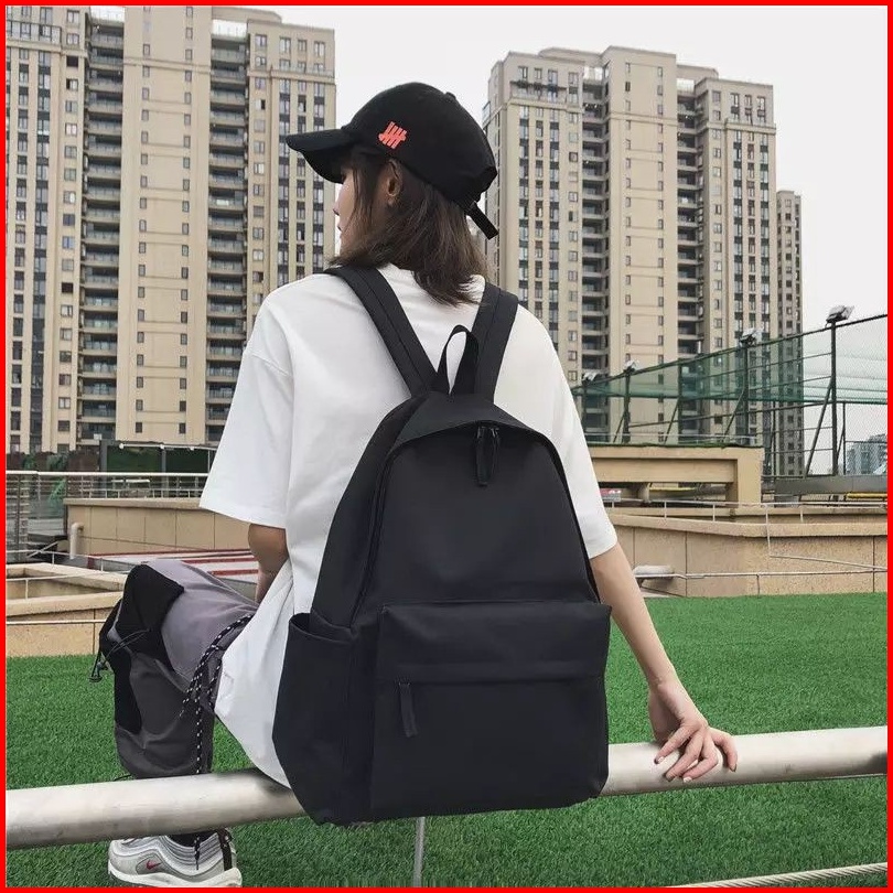 Backpack Tas Ransel Kanvas Hitam Unisex 40x30x12 Cm