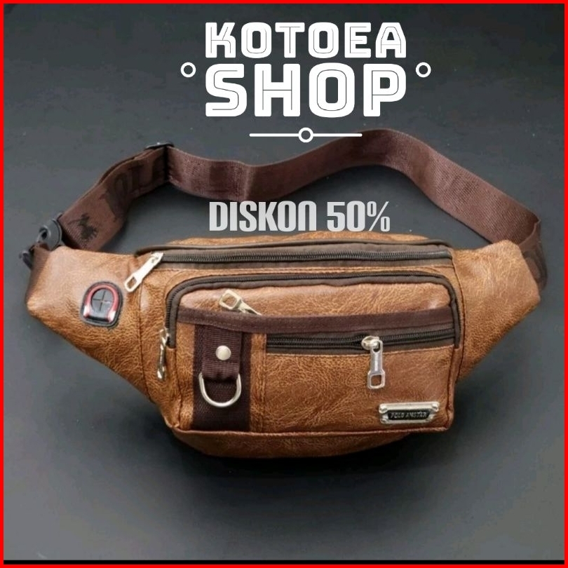 Waistbag Pria Tas Pinggang Waistbag Bahan Kulit Pu Leather Tas Pria