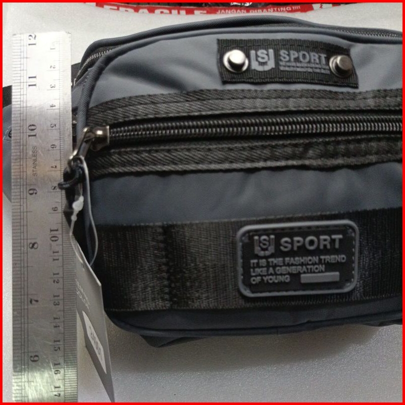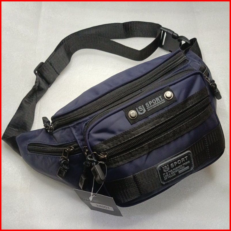 Waistbag Sport Import 24001 Tas Pinggang 6 Ruang Resleting Jumbo