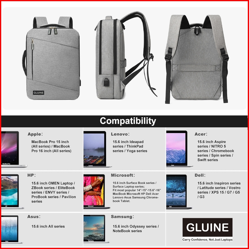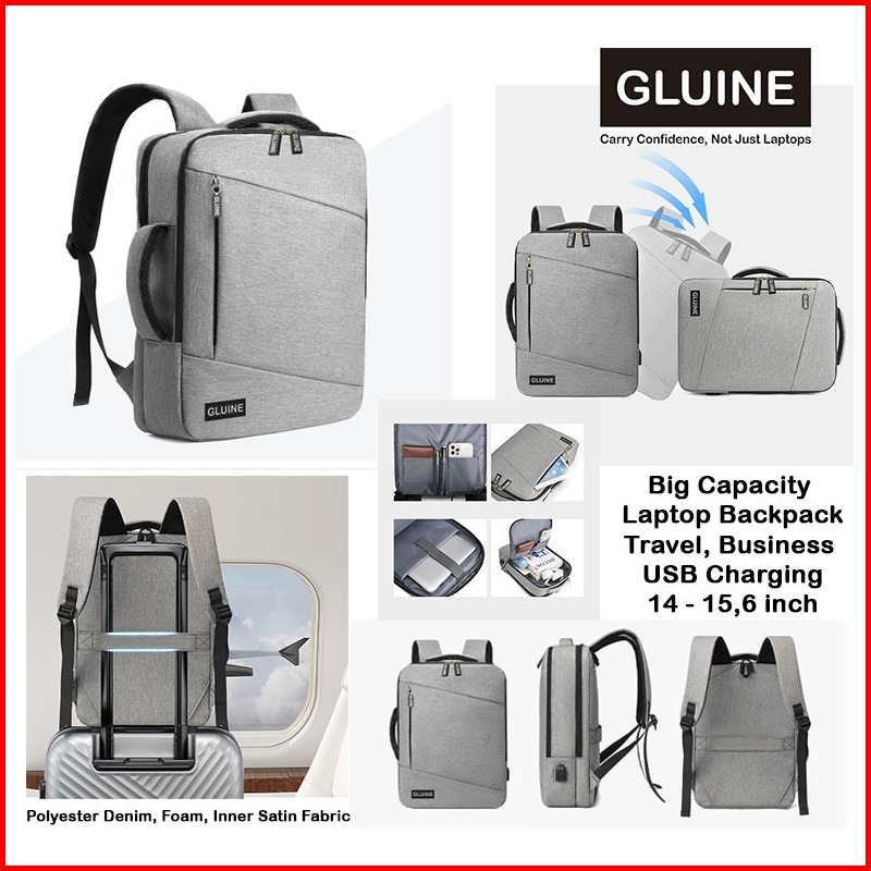 Gluine 268 Tas Laptop Backpack Big Capacity Ransel Waterproof With Usb Port Unisex Size 14 - 15.6 Inch