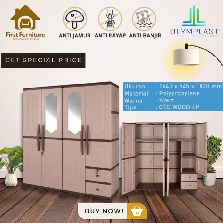 Olymplast Lemari Pakaian Plastic / Plastik 4 Pintu OTC Wood / Minimalis / Modern / Estetik