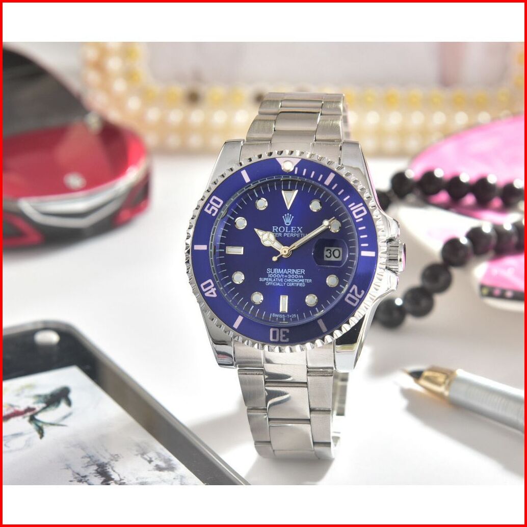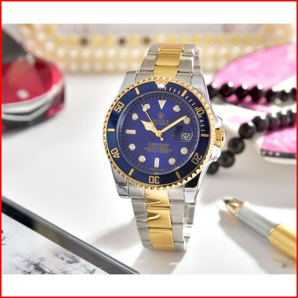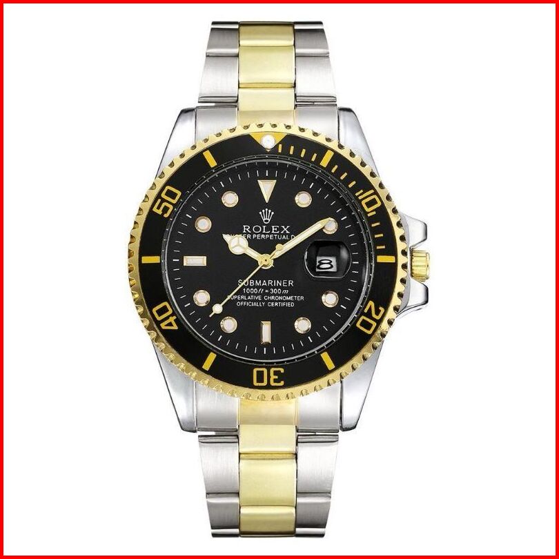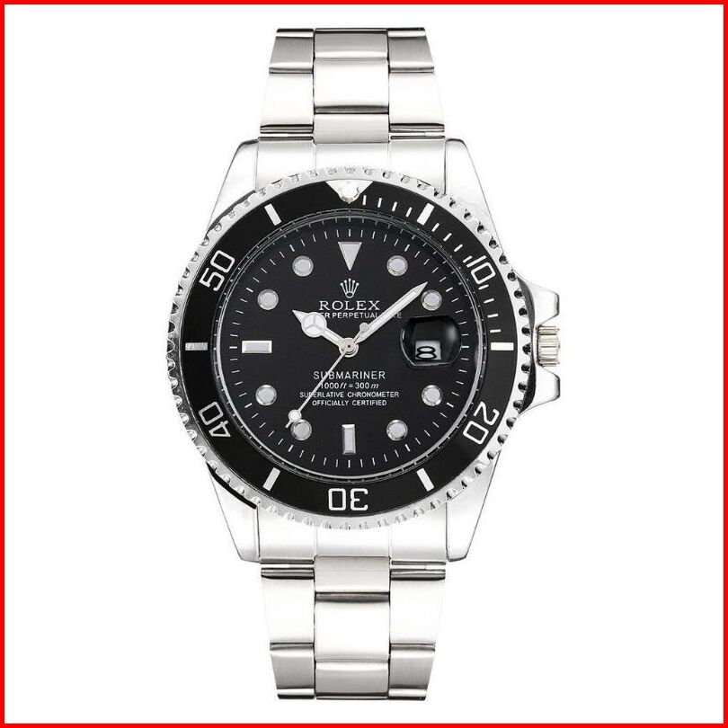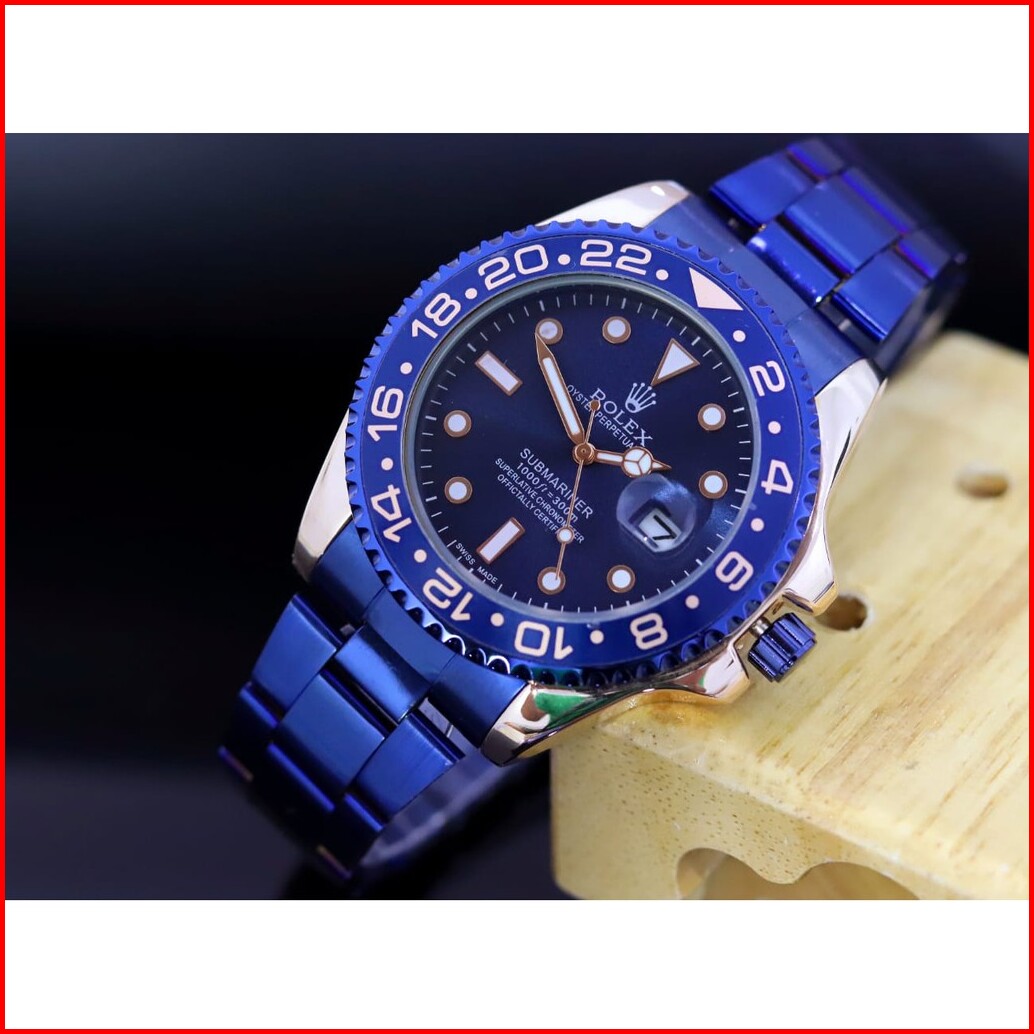 Jam Tangan Pria Rolex Submariner Rantai Body Bulat Ring Putar Permata Tanggal Aktif