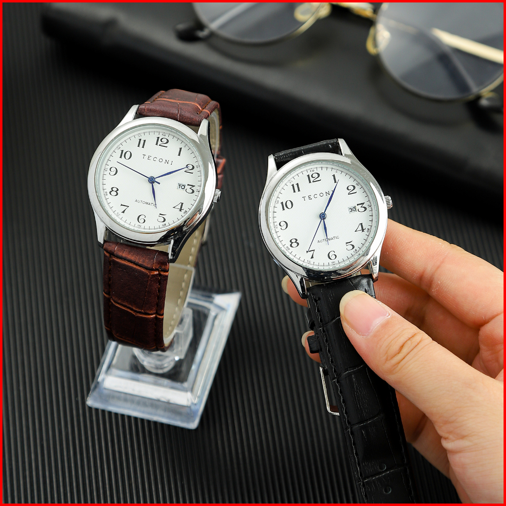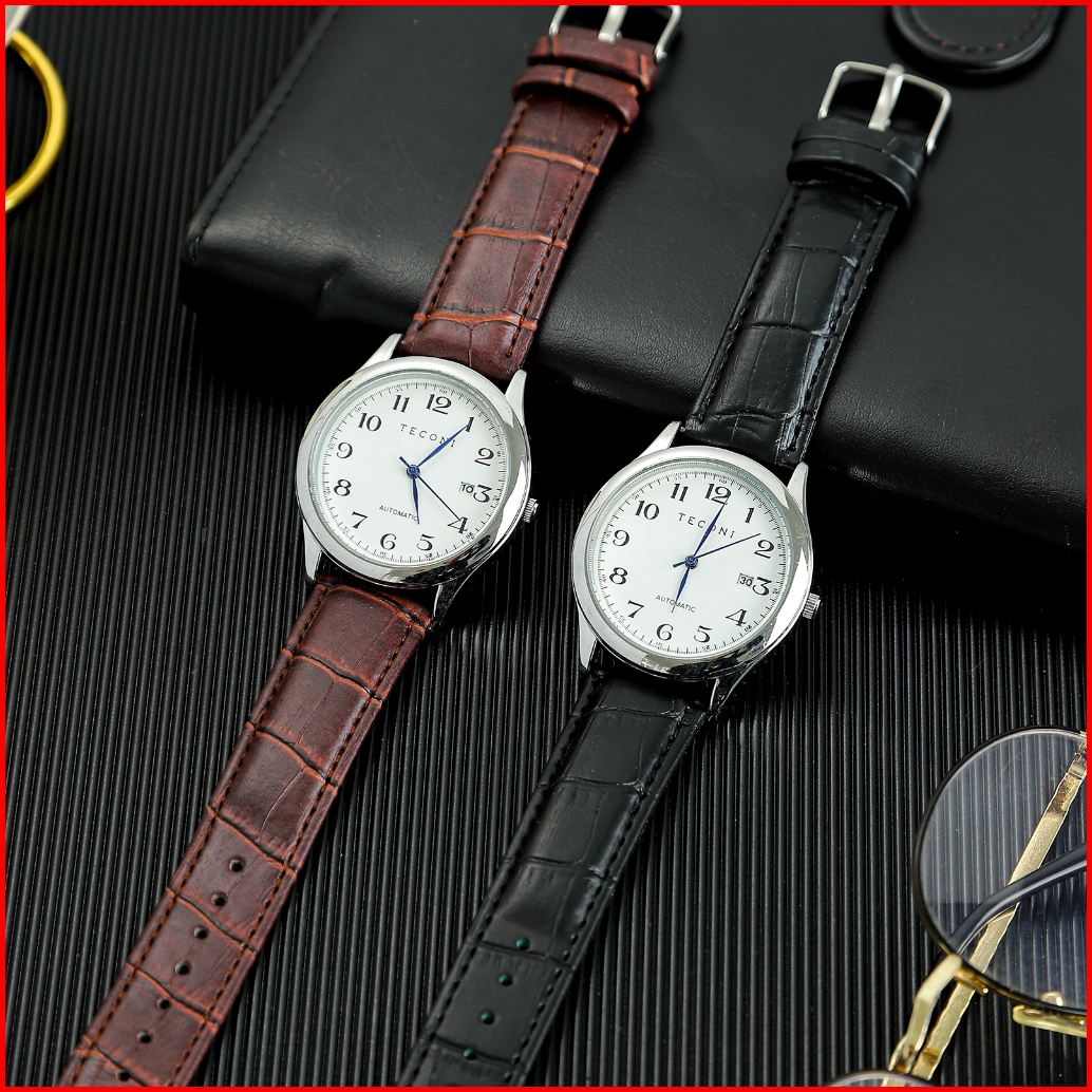 Teconi Jam Tangan Pria Kulit Fashion Dewasa P007 Analog Leather - Anti Air Free Bubble Free Box