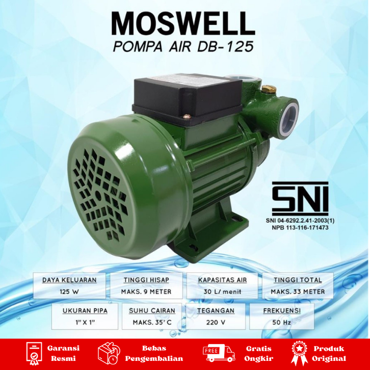 pompa air termurah moswell aqua DB 125 standard SNI 220v 125W terlaris termurah gratis ongkir