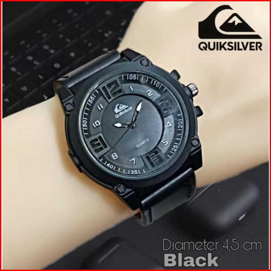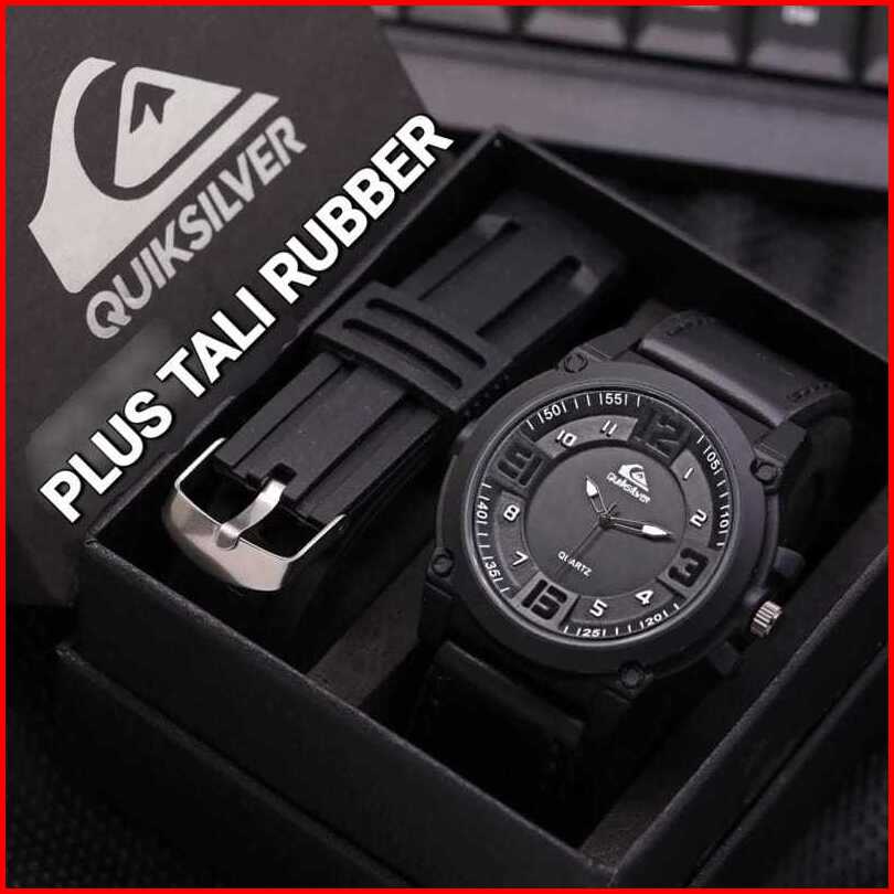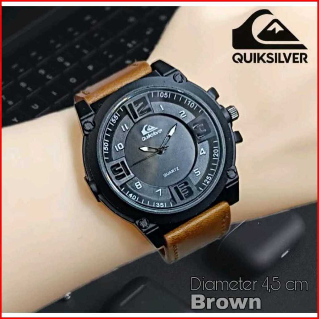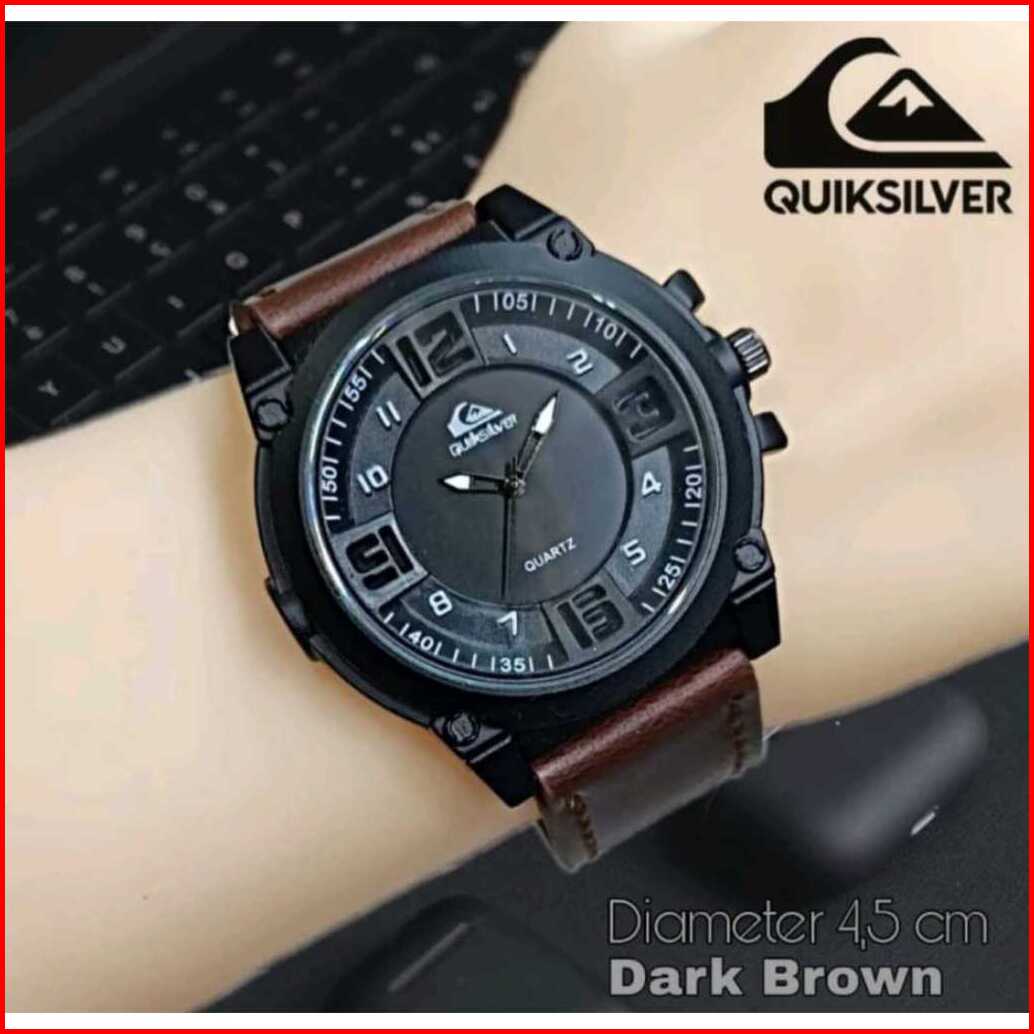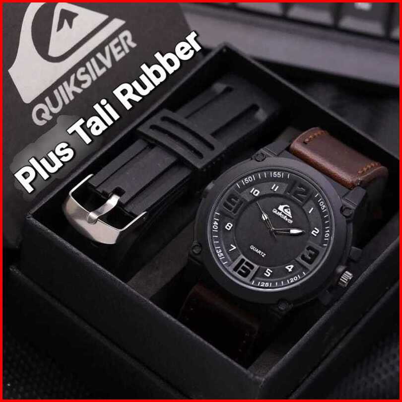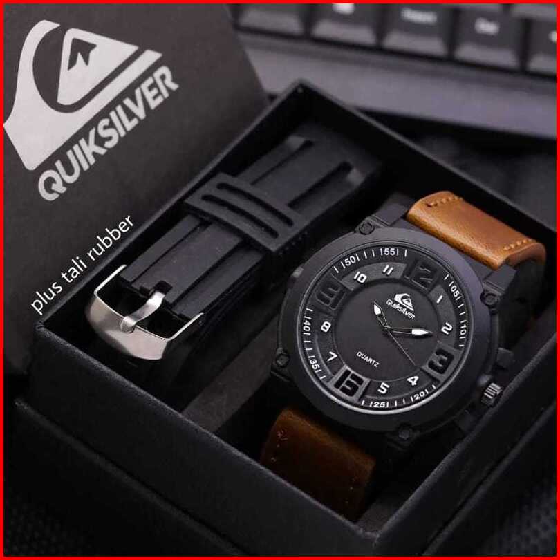 Best Seller - Jam Tangan Pria Quiksilver Tali Kulit Fashion Paket Waterproof - Free 1 Strap Rubber Free Box Exclusive Ba