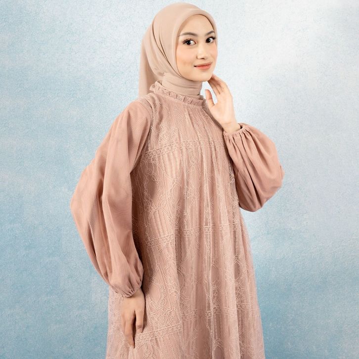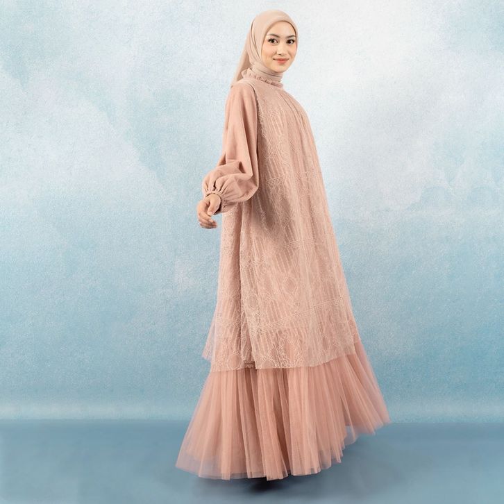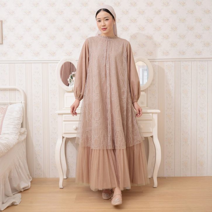 Dress Brukat Wanita Syahira Mocca Dress - Gaun Brukat Tulle Kondangan Elegan Best Seller