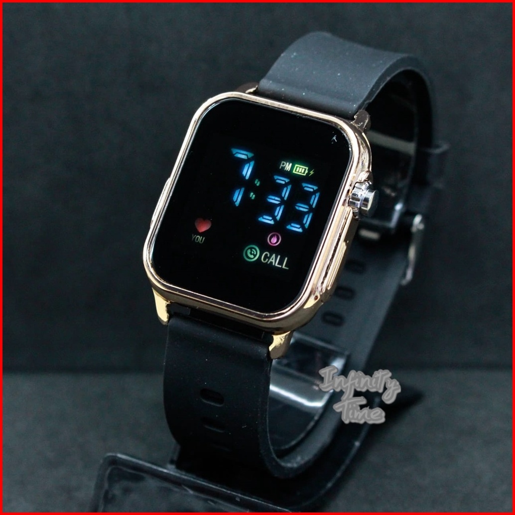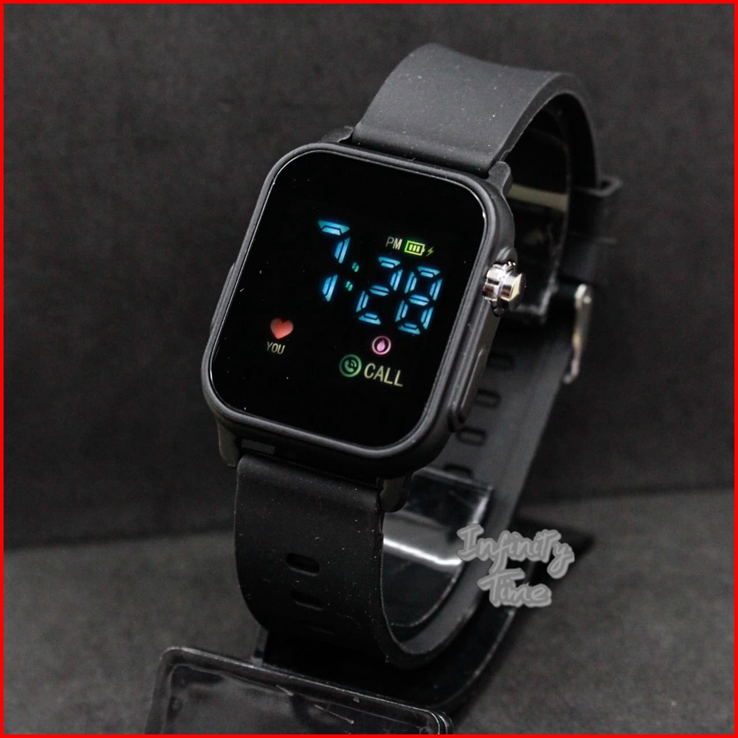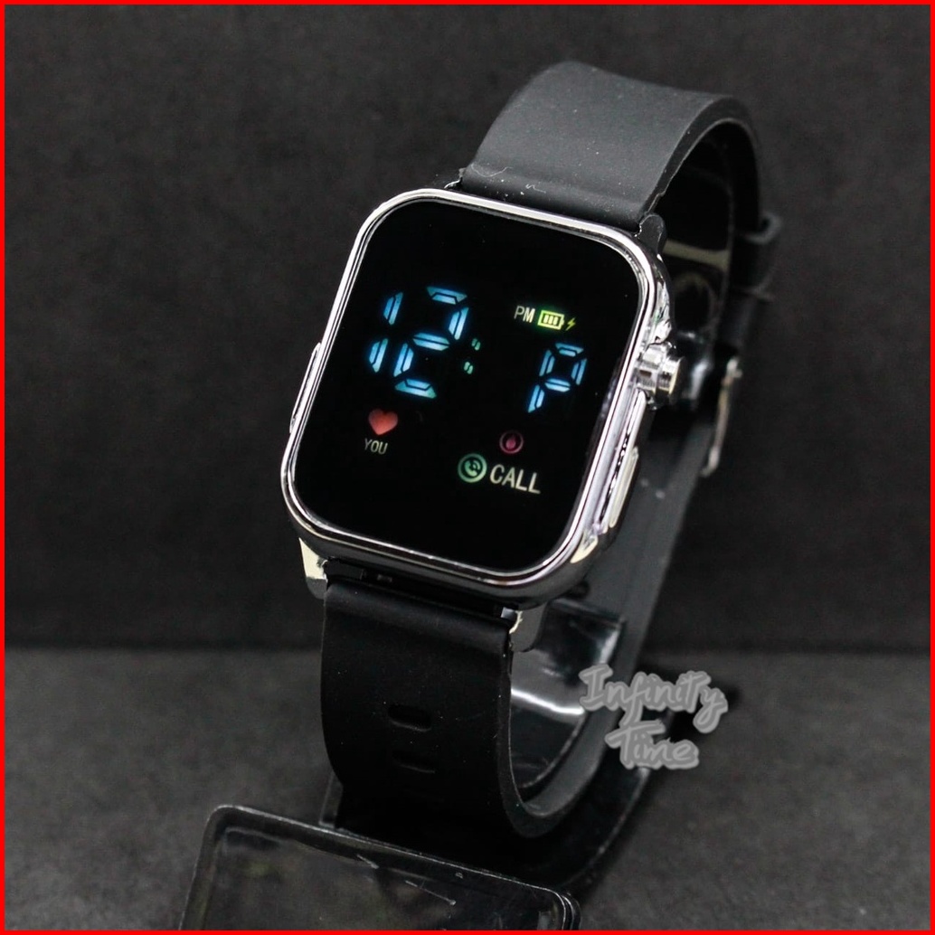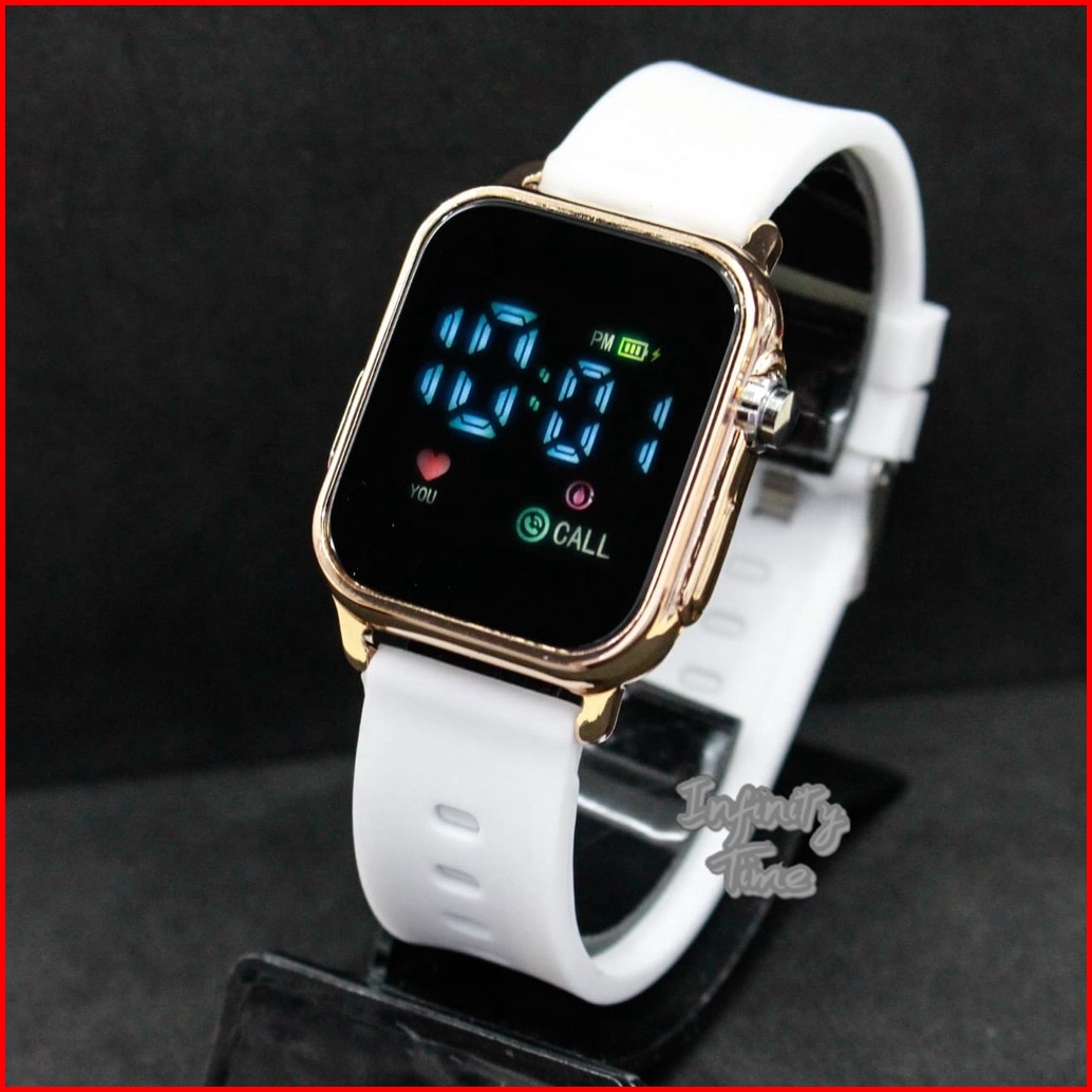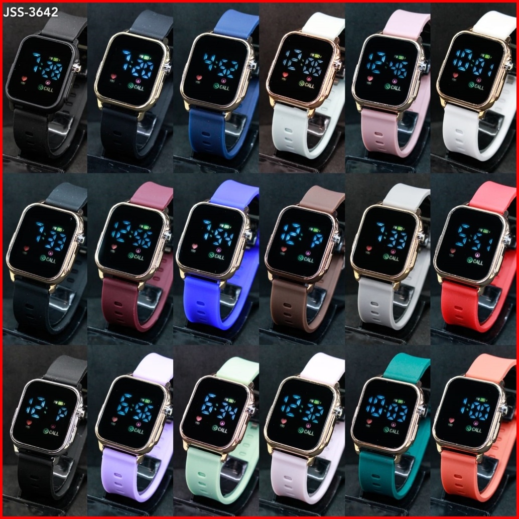 Jam Tangan Led Watch Jss3642 Kotak Cewek Cowok Strap Rubber