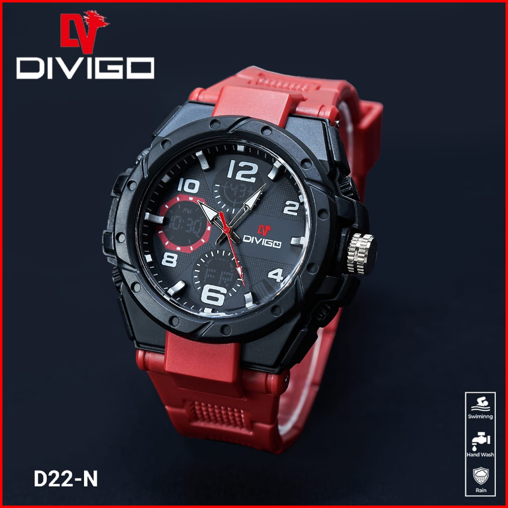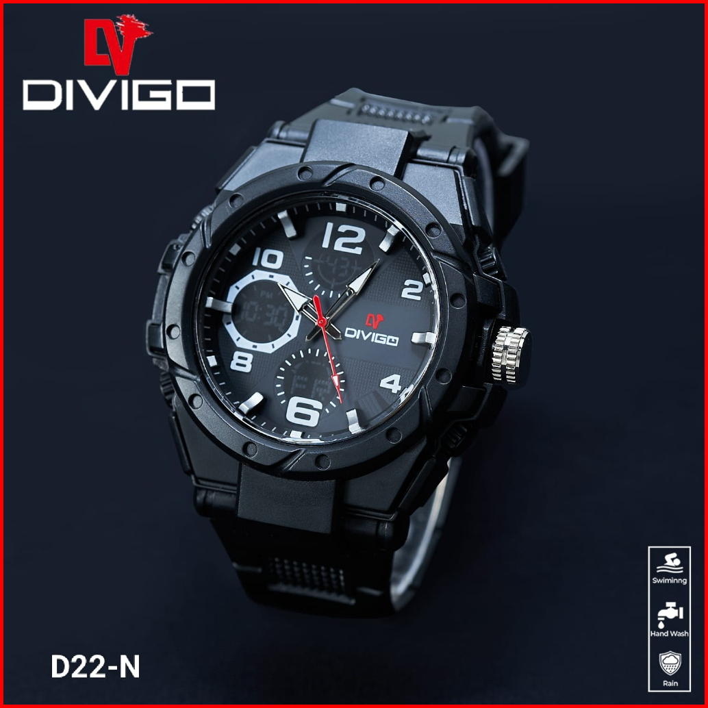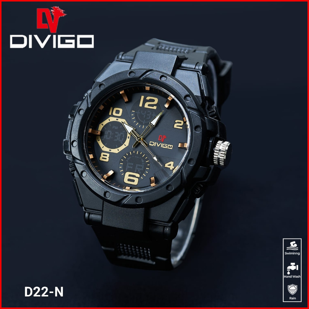 Jam Tangan Pria Divigo Analog D-22n Strab Rubber Tahan Air