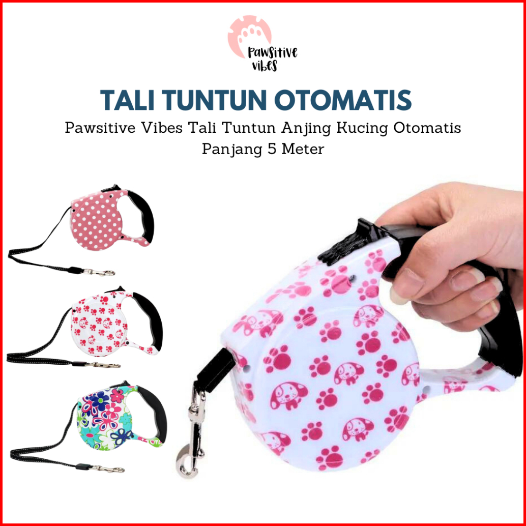 Pawsitive Vibes Tali Tuntun Anjing Kucing Otomatis 5m Retractable Automatic Leash Cat Dog