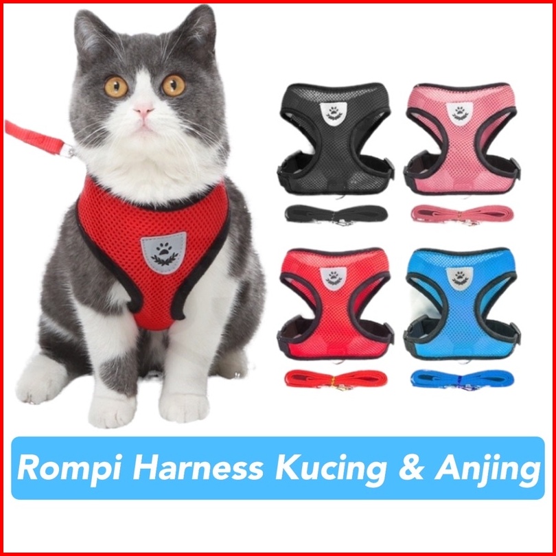 Royal Pet Paradise Kucing Rompi Harness Tali Tuntun Kalung Kucing Tali Pengikat Reflektif Harness Aksesoris Hewan Peliha