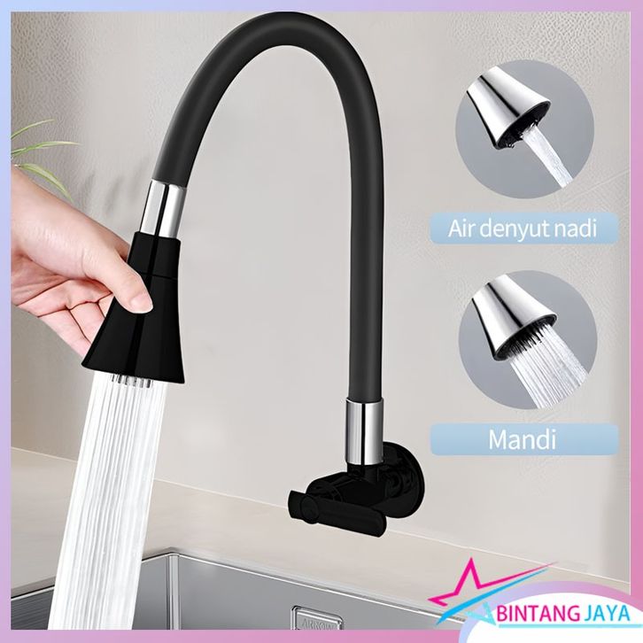 SUS304 Kran Angsa Fleksibel Kran Cuci Piring Hitam Kran Cuci Piring Dinding Anti Karat