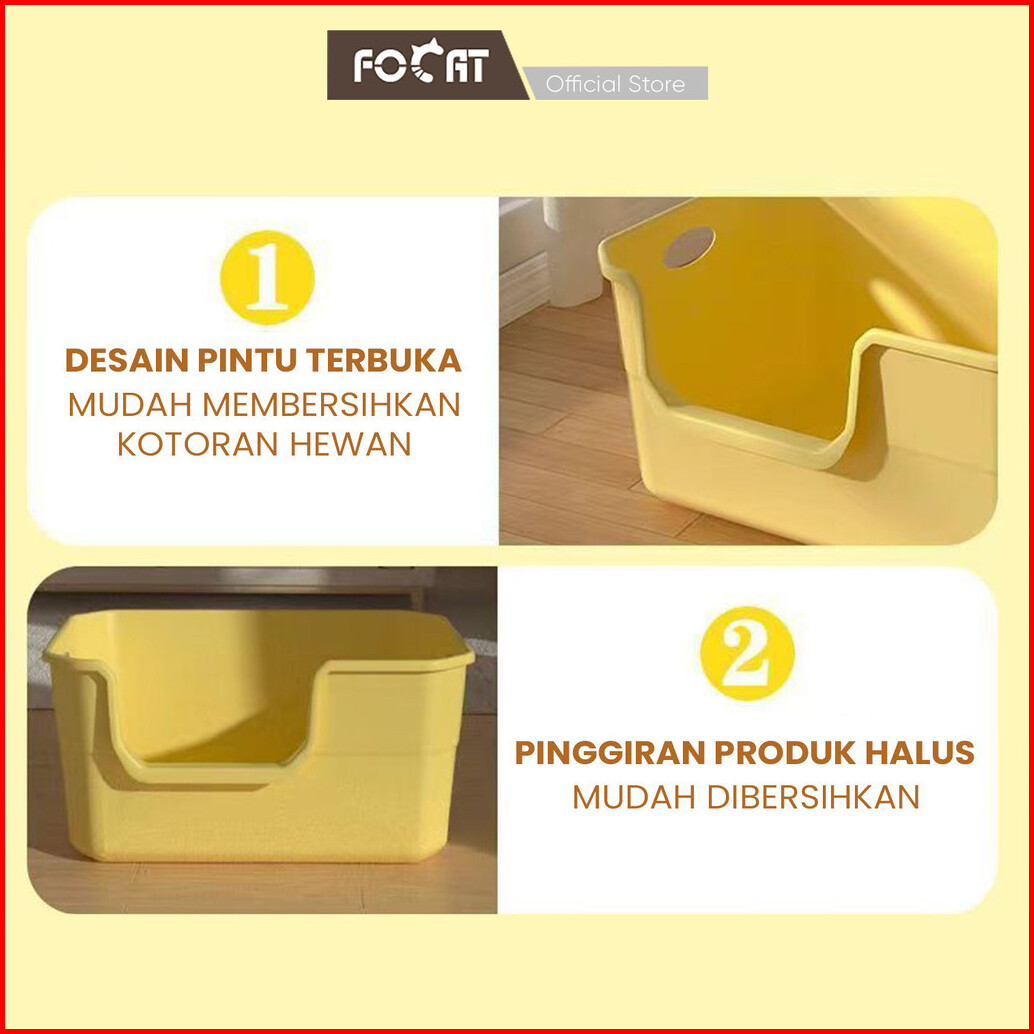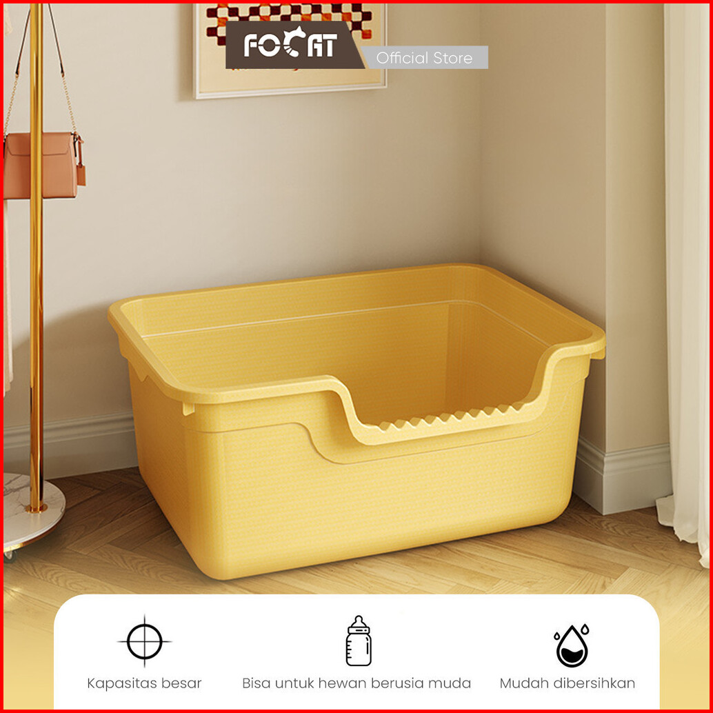 Focat Bak Pasir Kucing Anjing M19 Pet Litter Box Desain Terbuka Ukuran Besar Toilet Kucing Anjing