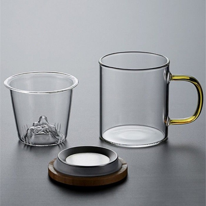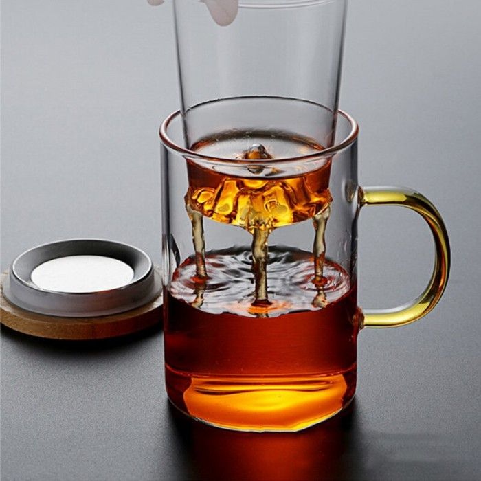 Gelas Cangkir Teh Dengan Filter Penyaring + Tutup 350ml