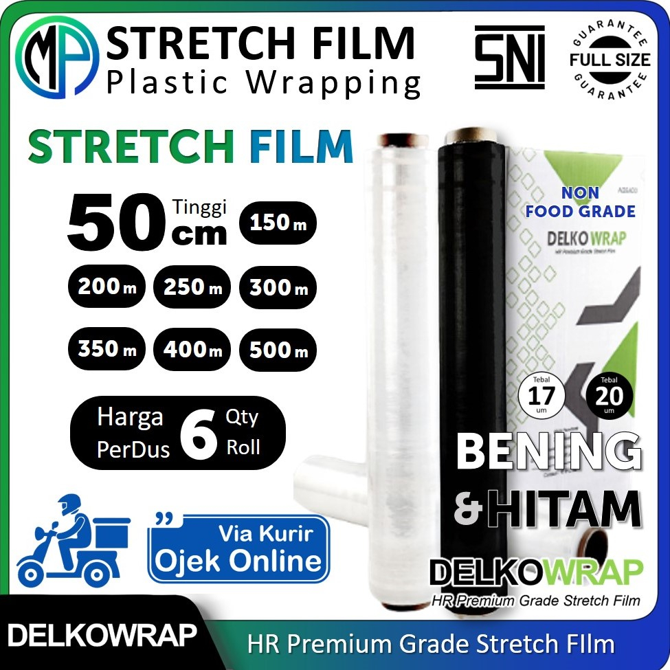 PLASTIK WRAPPING BARANG / STRETCH FILM LEBAR 50CM BENING & HITAM DELKOWRAP HARGA PER-DUS