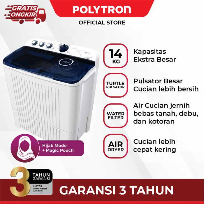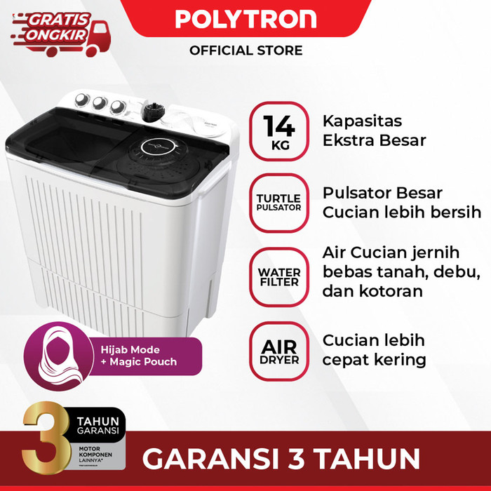 POLYTRON PRIMADONA GIANT MESIN CUCI 2 TABUNG 14 KG PWM 1403 - HITAM