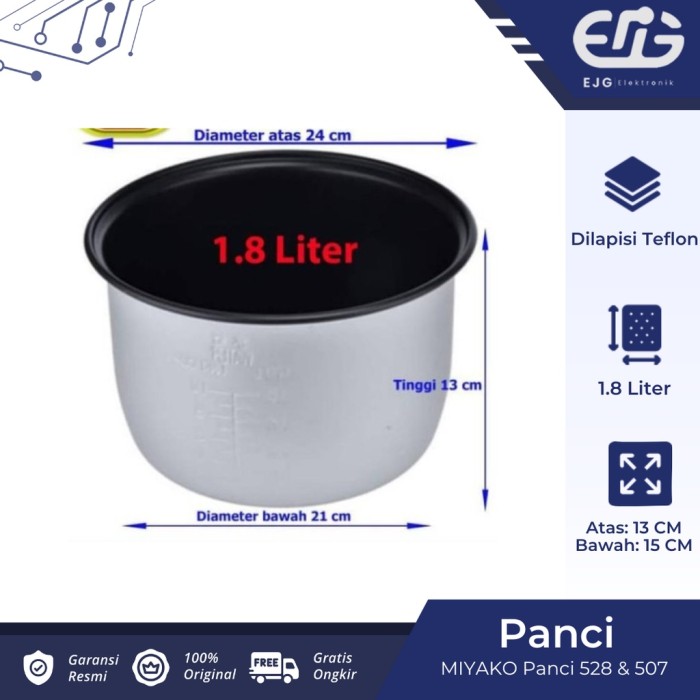 PANCI TEFLON MAGIC COM MIYAKO 1,8 LITER (100 PERSEN ORI MIYAKO) - 15CM 1,8L - 13CM