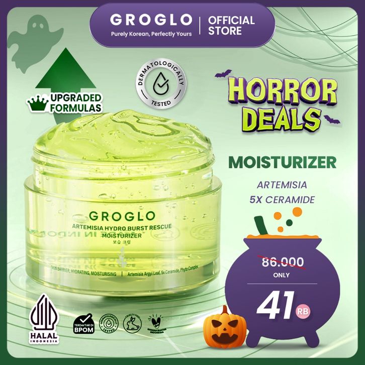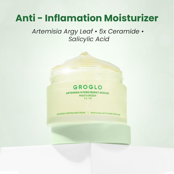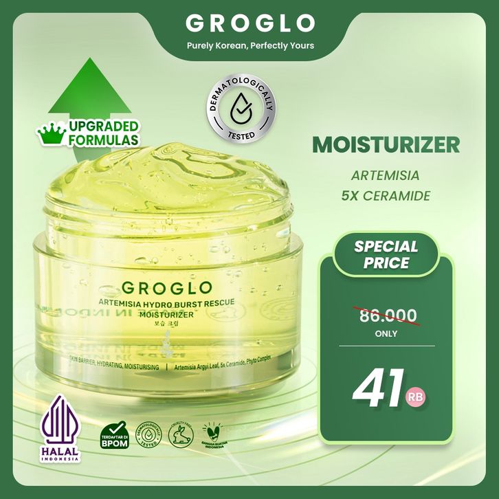 GROGLO Moisturizer Artemisia 5x Ceramide 50gr anti acne, Pelembab Wajah, Perbaiki skin barrier, menenangkan dan meredaka