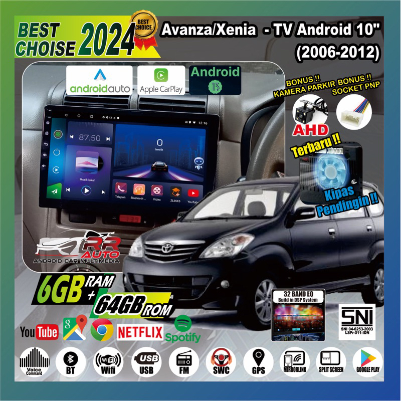 AVANZA XENIA 2006-2012| 6+64GB TAPE TV MOBIL,HEADUNIT ANDROID OS 13,APPLE CARPLAY,ANDROIDAUTO,IPS,WIFI,DSP 32BAND EQ(BONUS KAMERA PARKIR & SOCKET PNP)