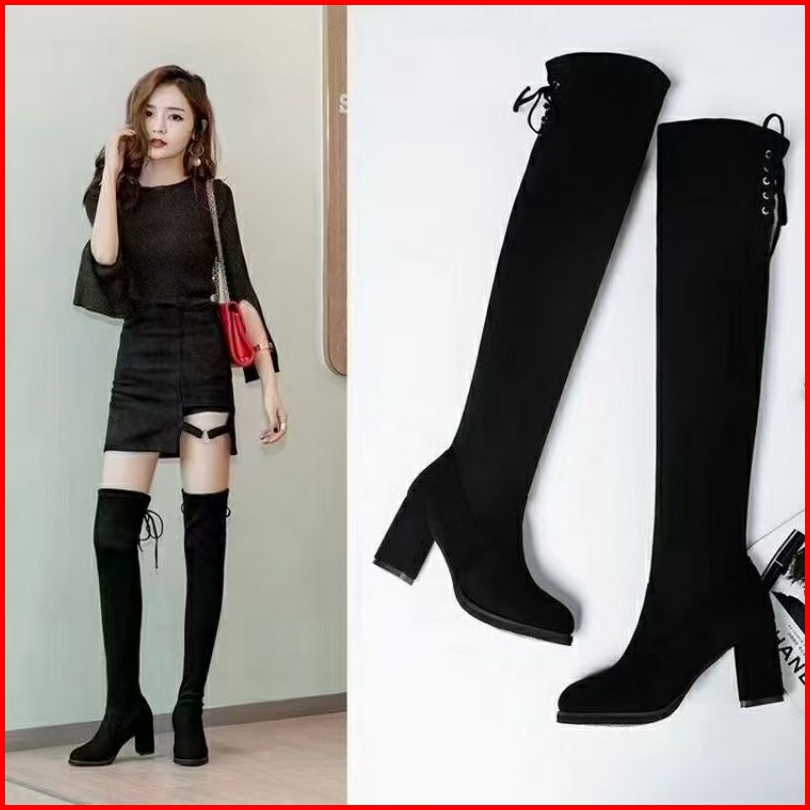 Over Knee Long Boots Heels Block Winter Korea Sepatu Kerja Wanita B21 B82
