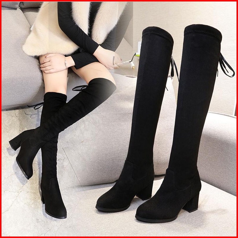 Sepatu Boots Wanita Hitam Sepatu Boots Tinggi Sepatu Boots Gaya Korea Real Pic