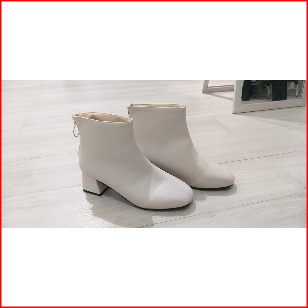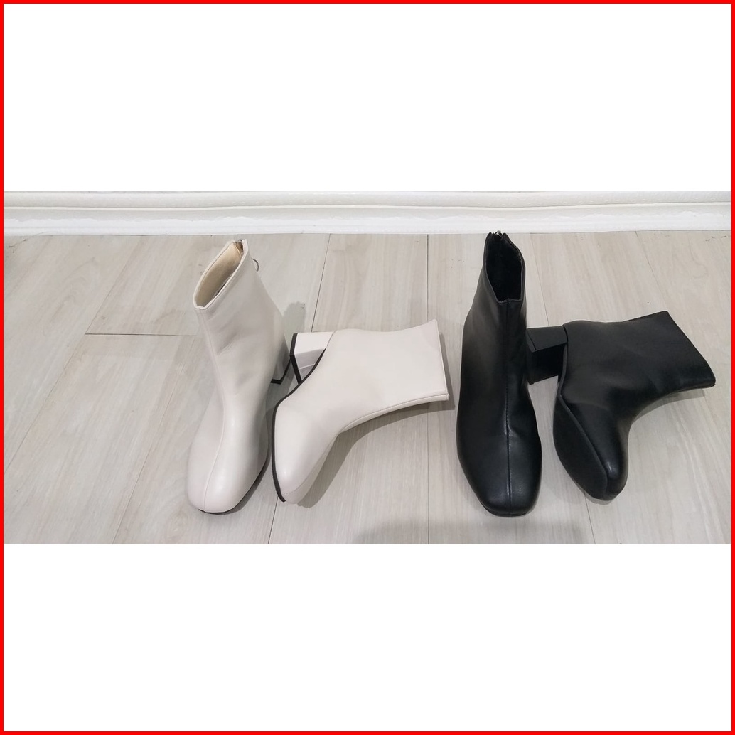 Hs Sepatu Boots Wanita Heel Fashion Warna Hitam Cream 230