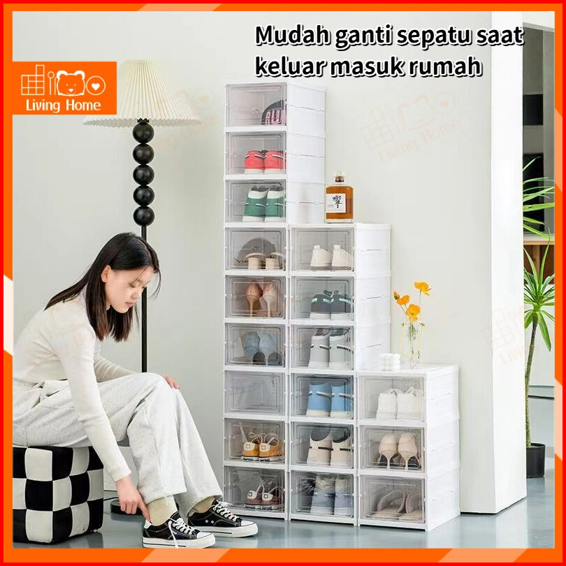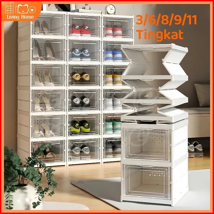 3 6 8 9 11 Tingkatrak Sepatu Susun Tertutup Rak Sepatu Kotak Sepatu Lipat Transparant