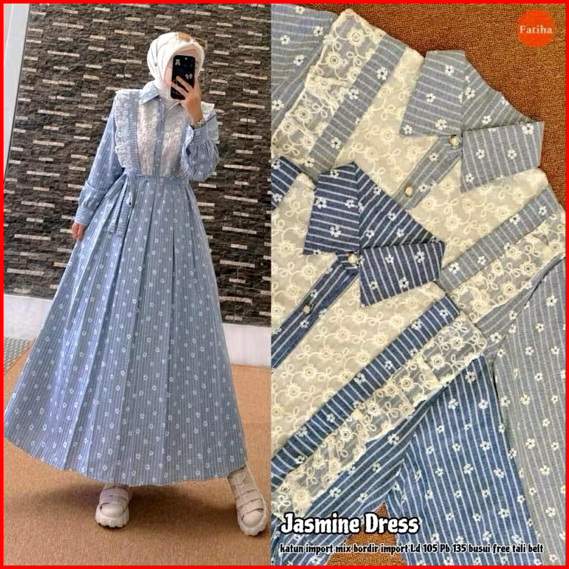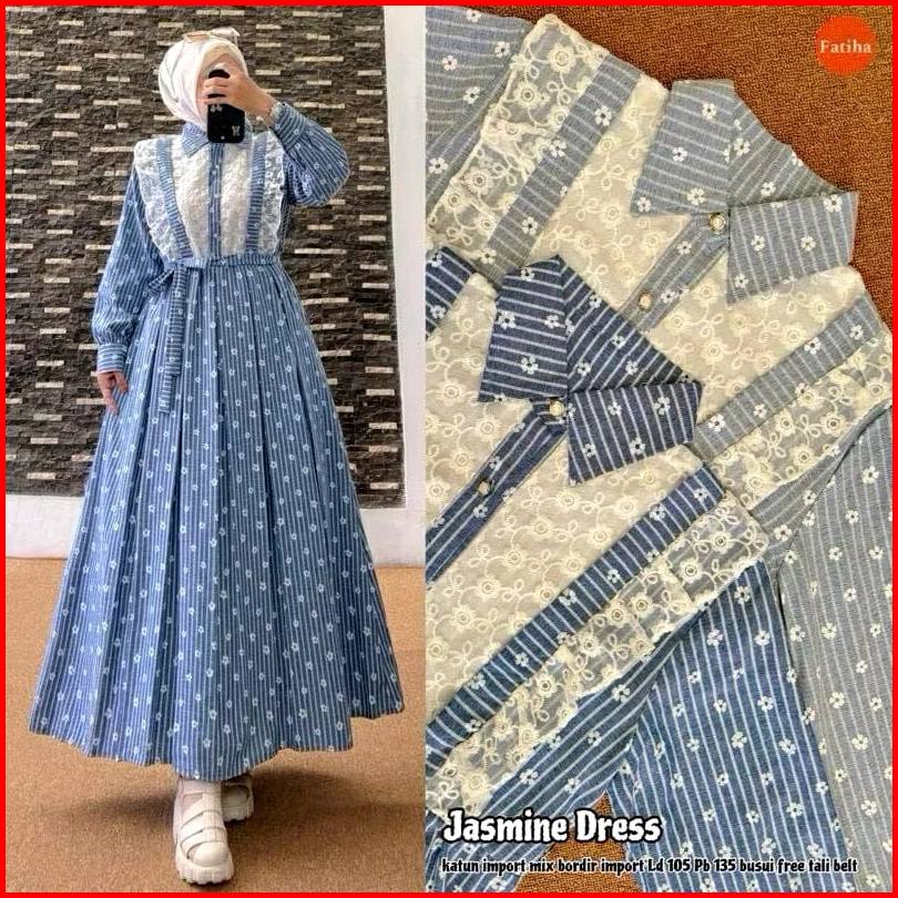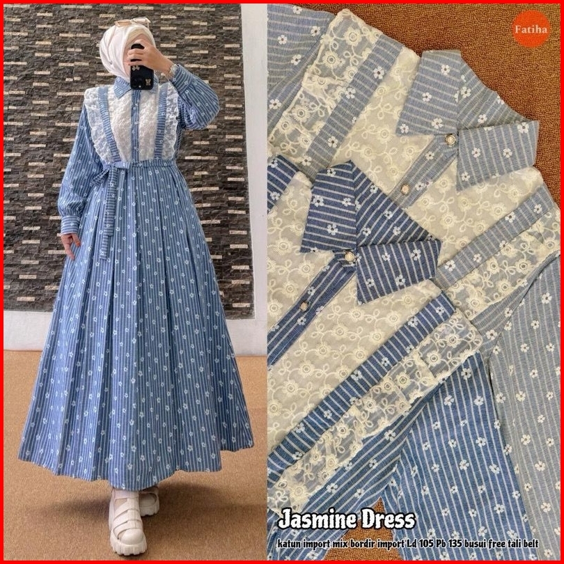 Gamis Jasmin Katun Premium Mix Brukat Renda