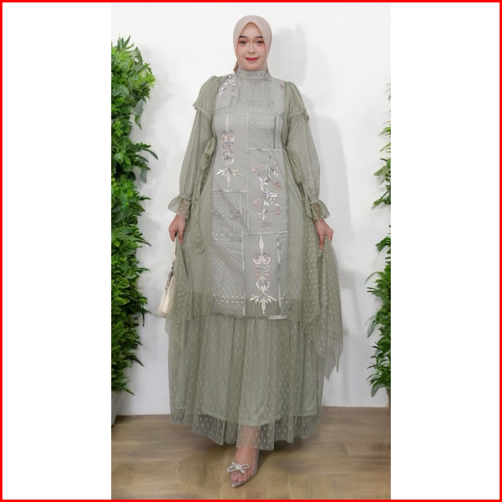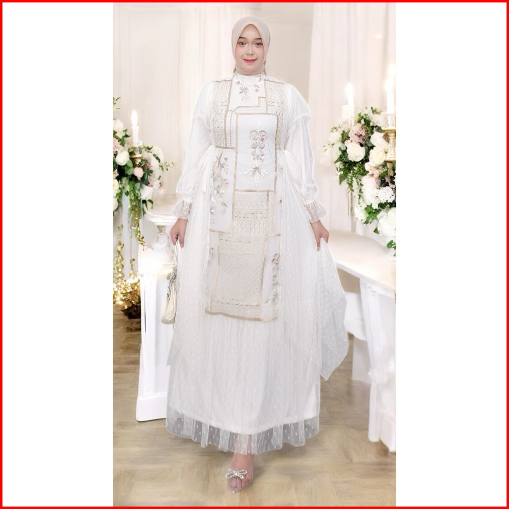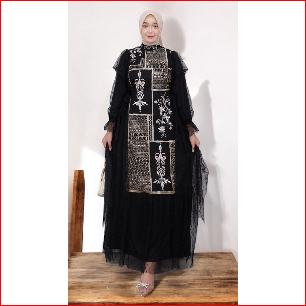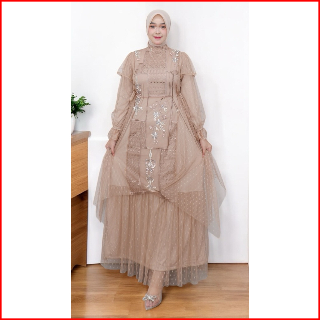 Milea Dress Gamis Wanita Muslim Kondangan Mewah Tile Bordir By Qeeana