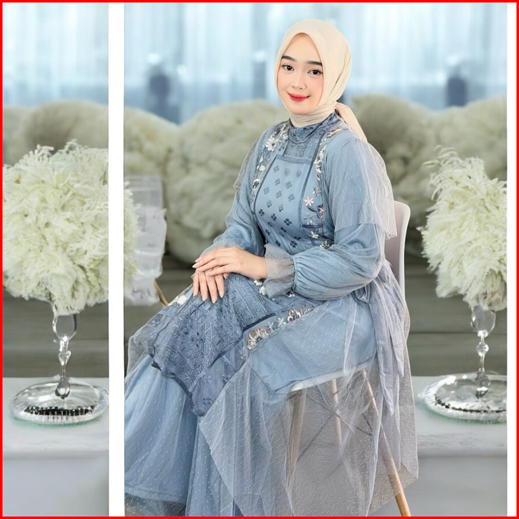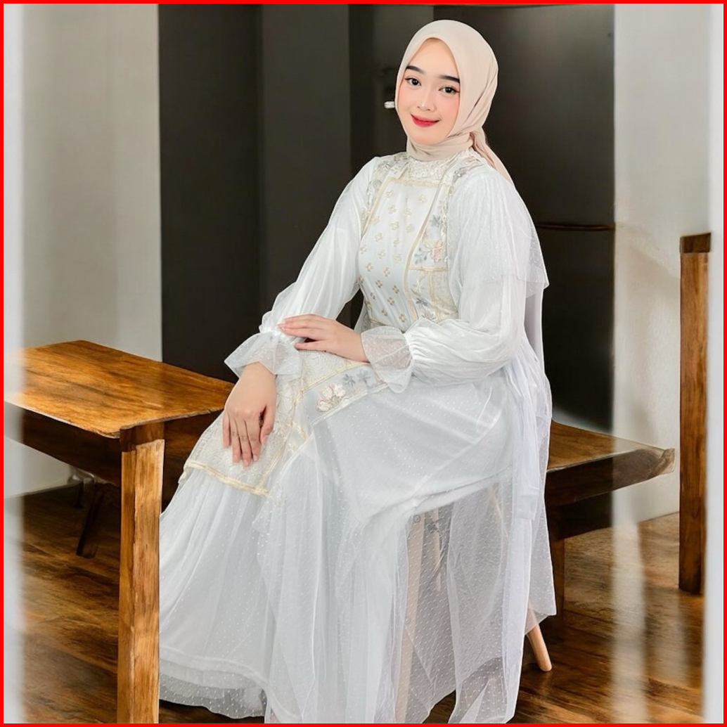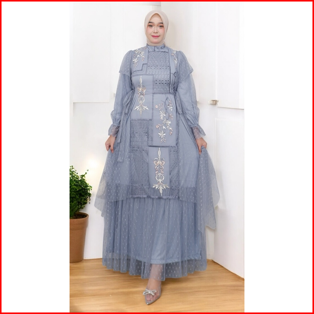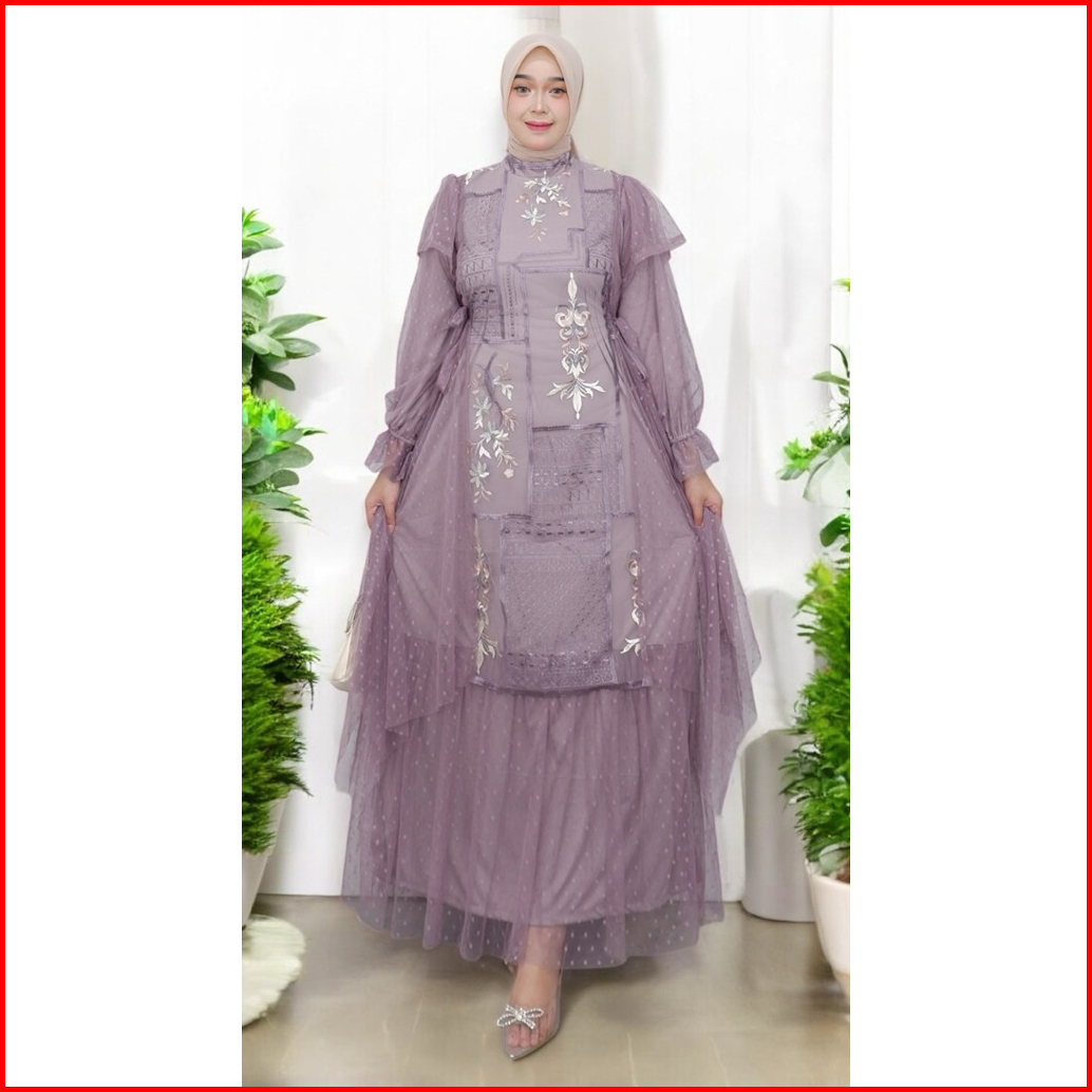 Milea Dress Gamis Wanita Muslim Kondangan Mewah Tile Bordir By Qeeana