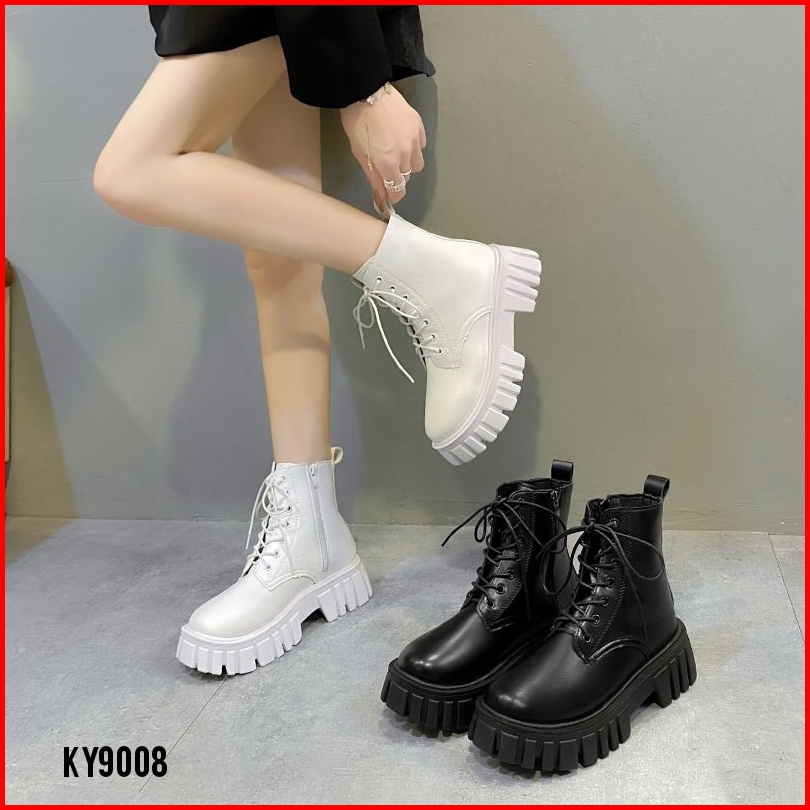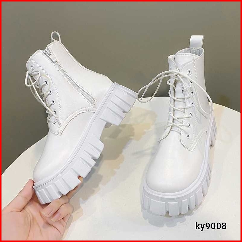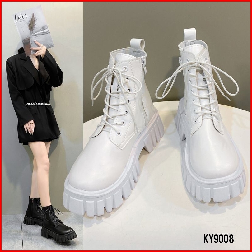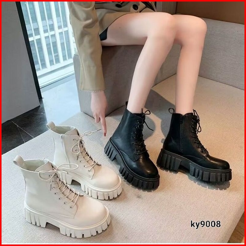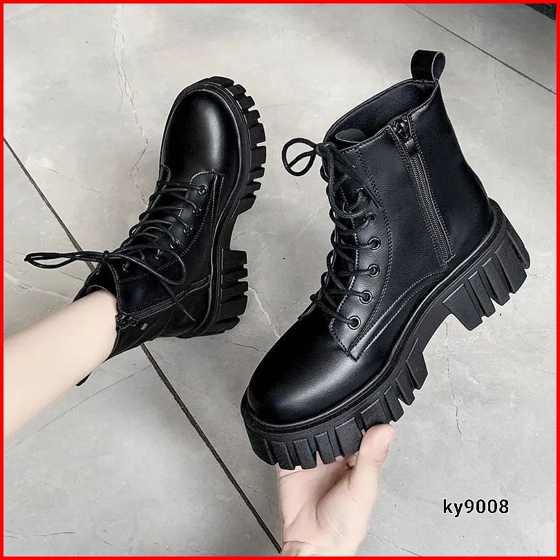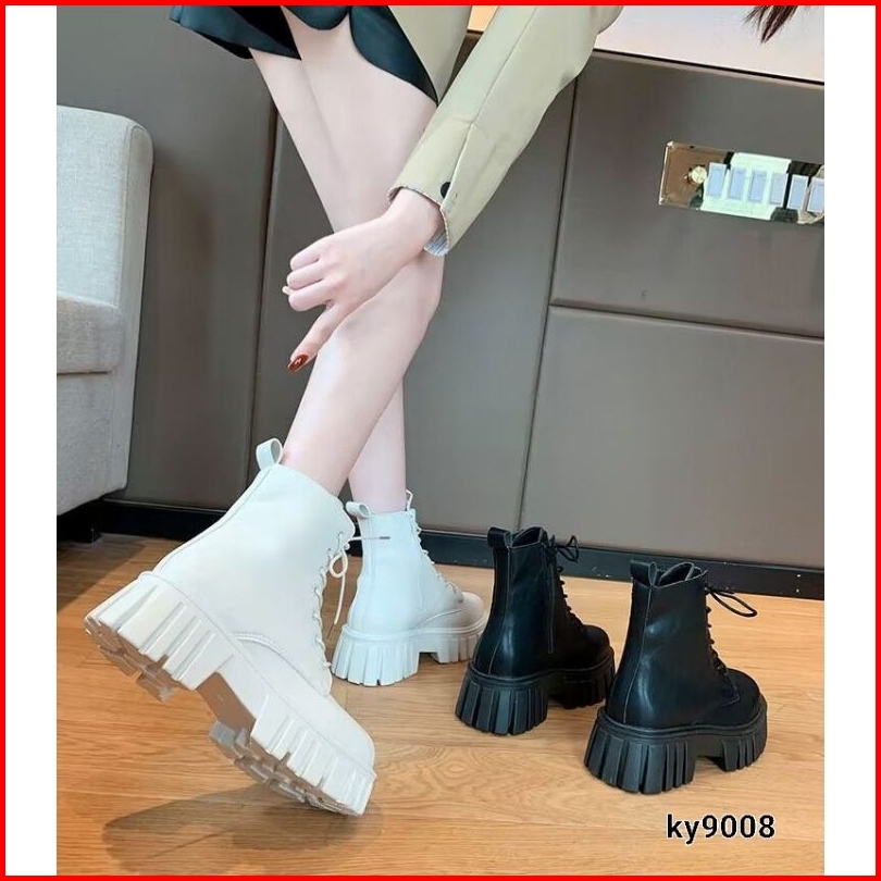 Amiina Boots Ky9008 Style Korea Autumn Winter Lace Up Zipper Cakep