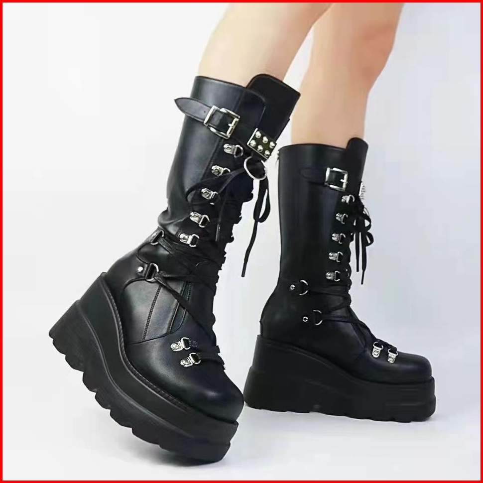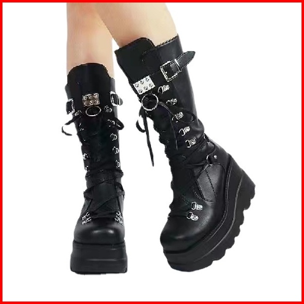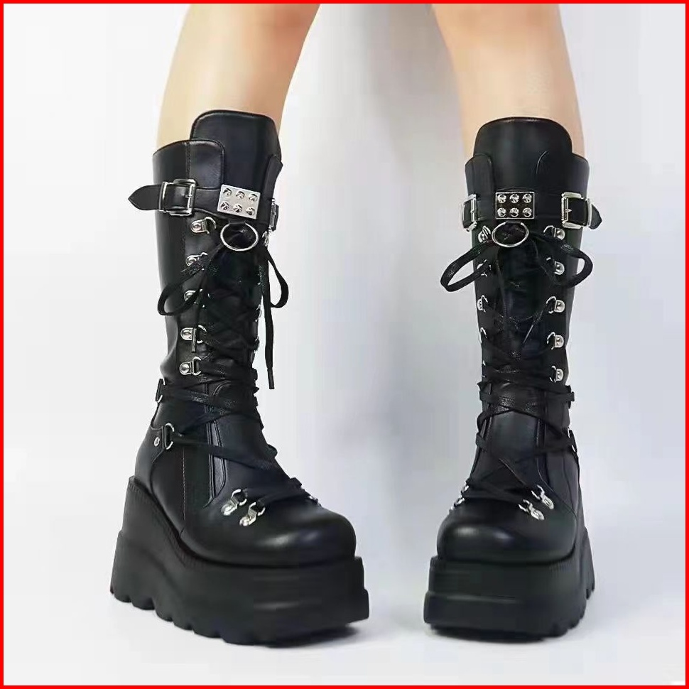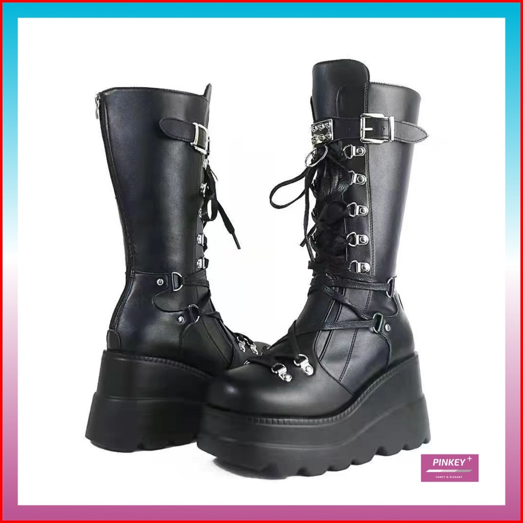 Pinkey P129 Sepatu Boots Wanita Sepatu Martin Tinggi Sebetis Ori Black