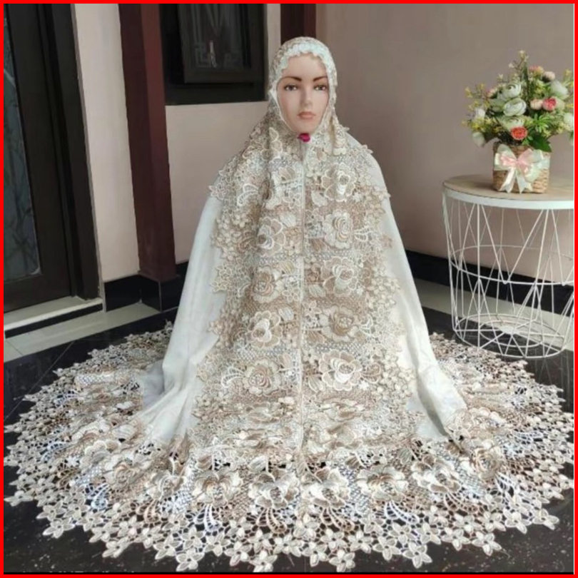 Mukena Poli Renda Mawar Full Set Katun Mewah