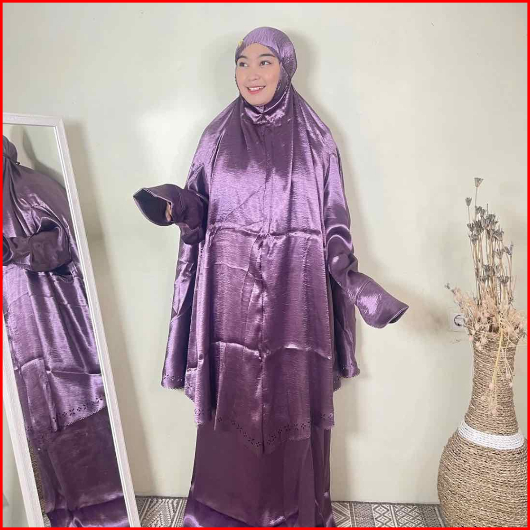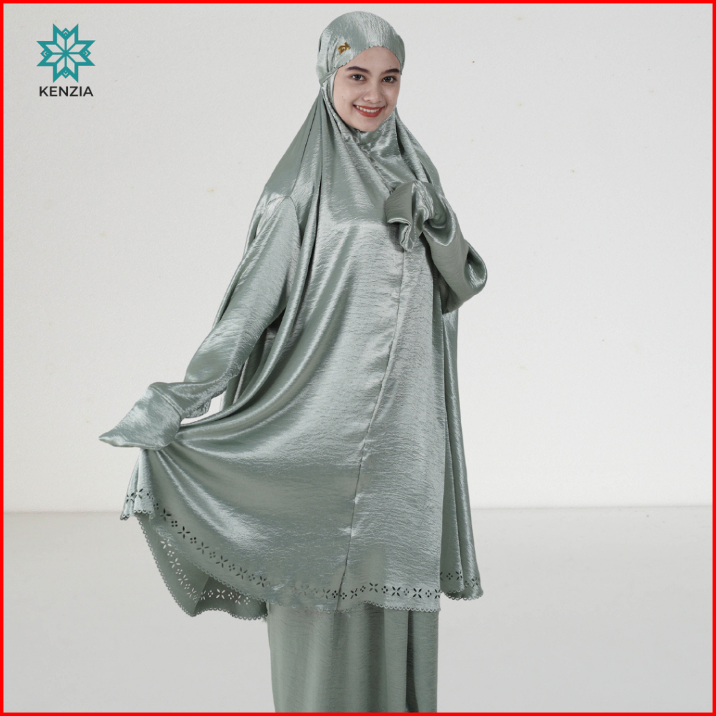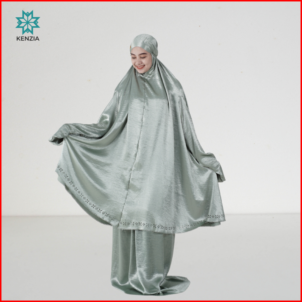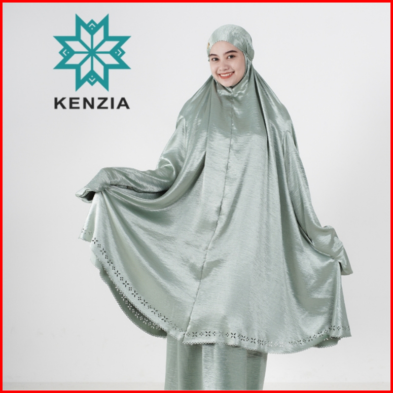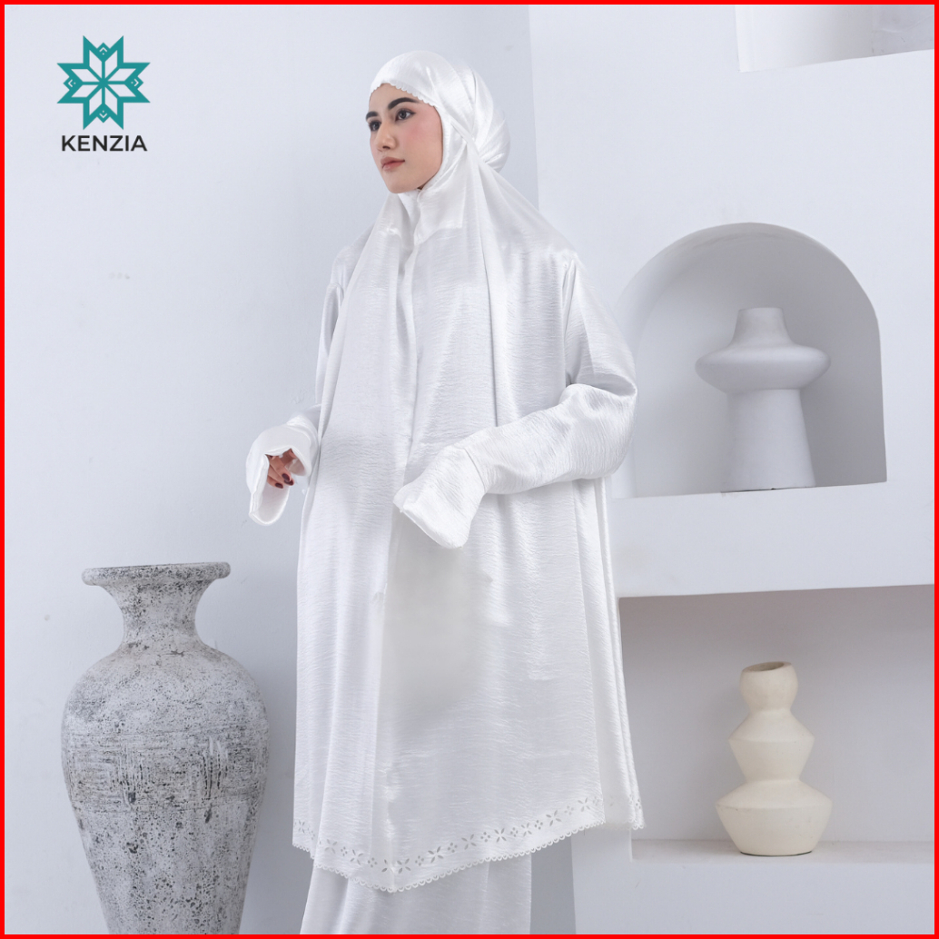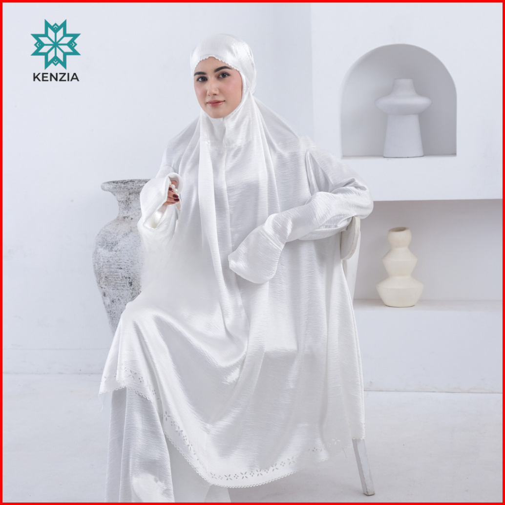 Kenzia - Mukena Dewasa Haji Dan Umroh Jumbo Berlengan Laser Cut Mocino Shimer Silk Daily Zayra