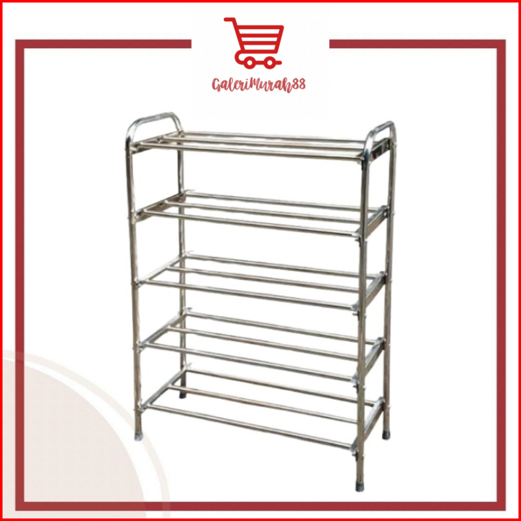 Rak Sepatu Sendal Stainless Steel 3 4 Dan 5 Susun Tempat Alas Kaki Anti Karat Bahan Kuat