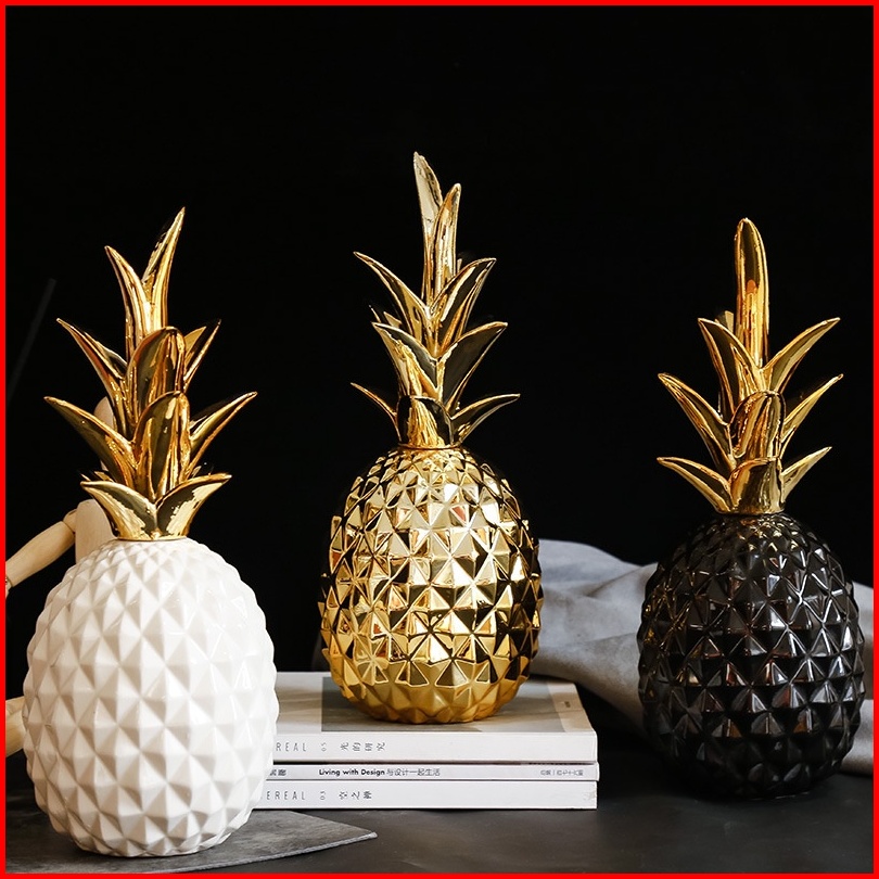 Dekorasi Desain Nenas Keramik Pajangan Nordic Mewah Pineapple White Black