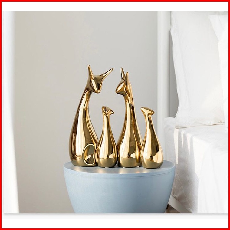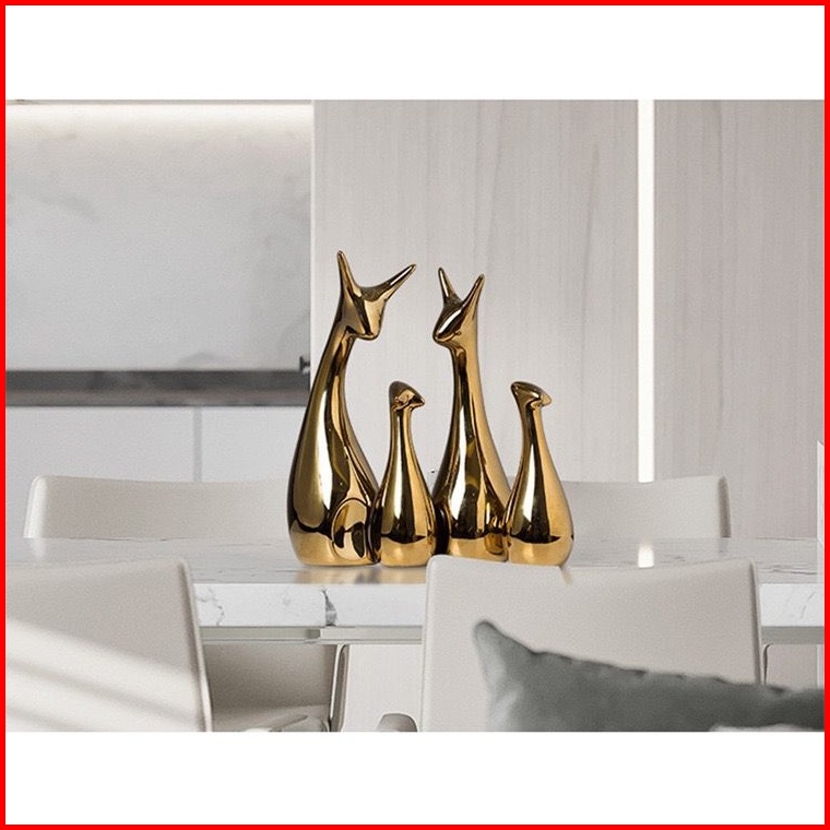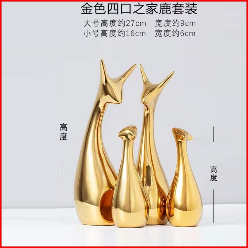 Ornamen Set Rusa 4pc Pajangan Rusa Set Isi 4 Pajangan Rusa Keramik Family Home Patung Dekorasi Golden Deer