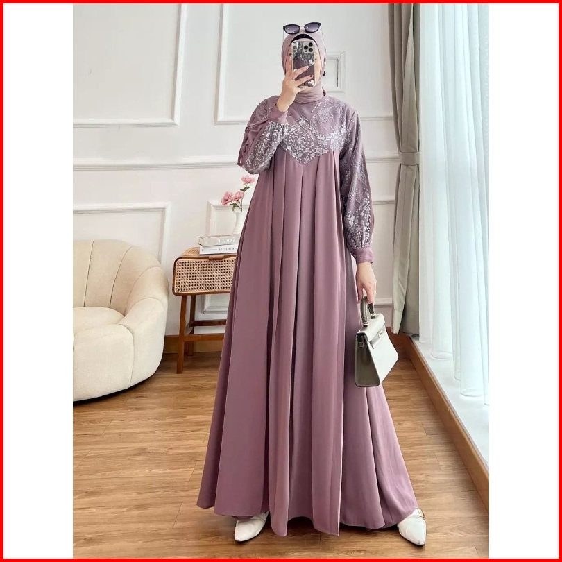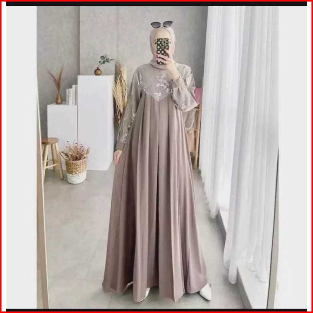 Fashion Muslim Pakaian Wanita Dress Gamis Fuji Dress Gamis Brokat Bridesmaid Baju Kondangan Wanita