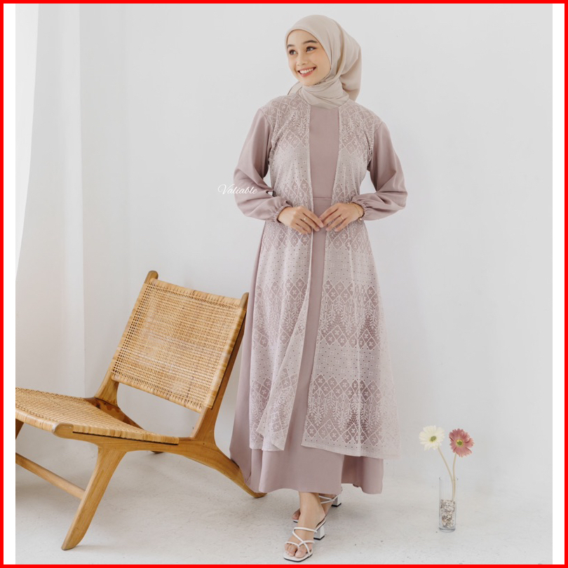 Yaseera Maxy Dress Combi Brukat - Gamis Brukat Wanita