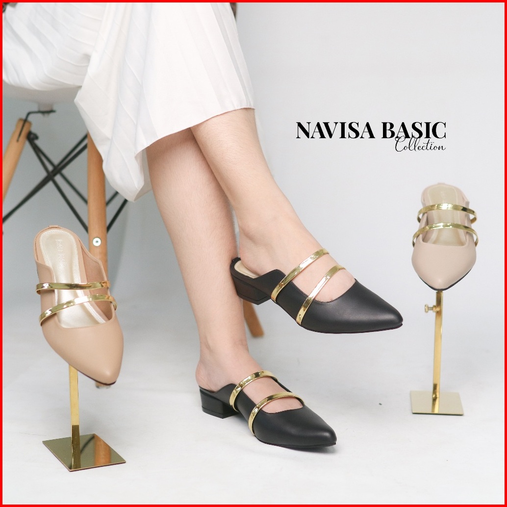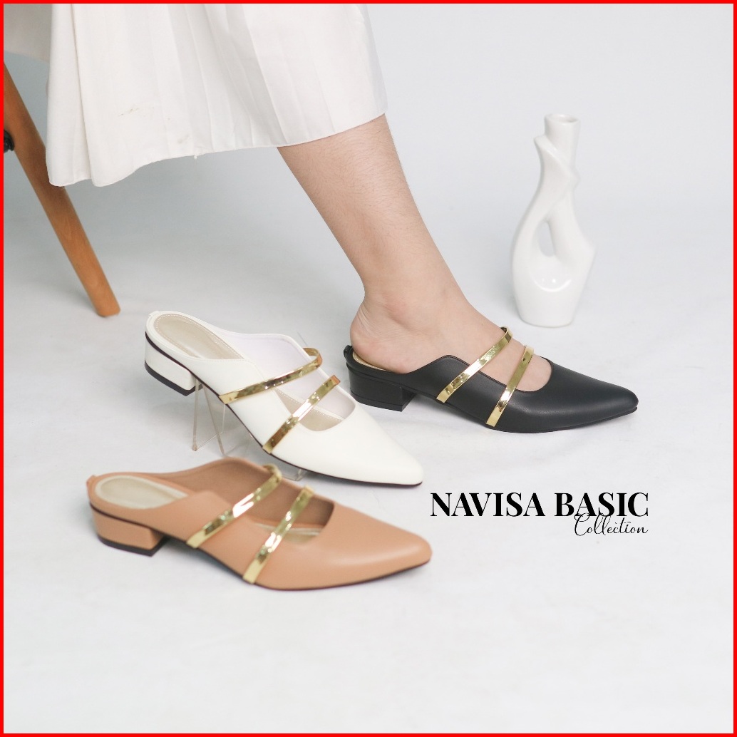 Mules Wanita Heels Hak 3 Cm Sepatu Sandal Wanita Flatshoes Wanita Navisa Basic Collection