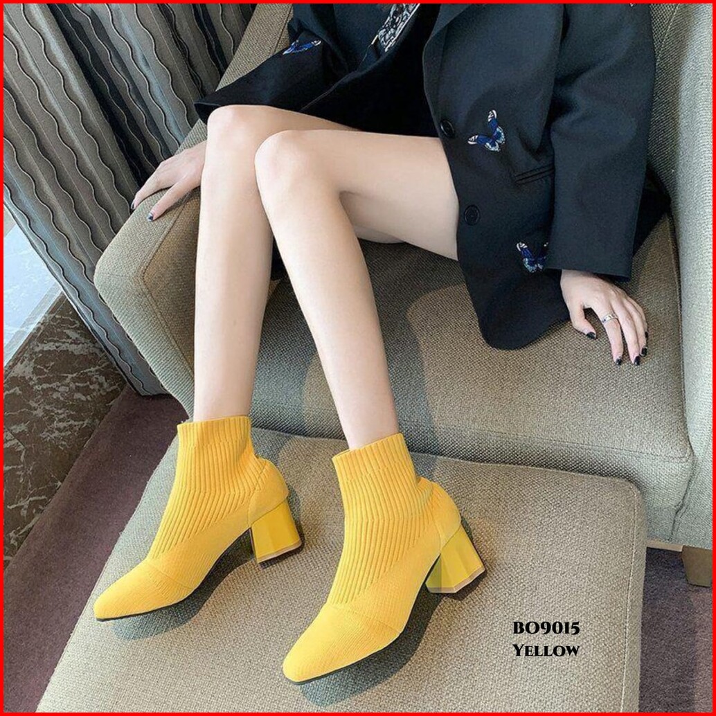 Wyn Boots Flat Tinggi 5.5cm Black Yellow Beige Uk 36-40 Canvas Elastis Sepatu Wanita Santai Korea Bo9015