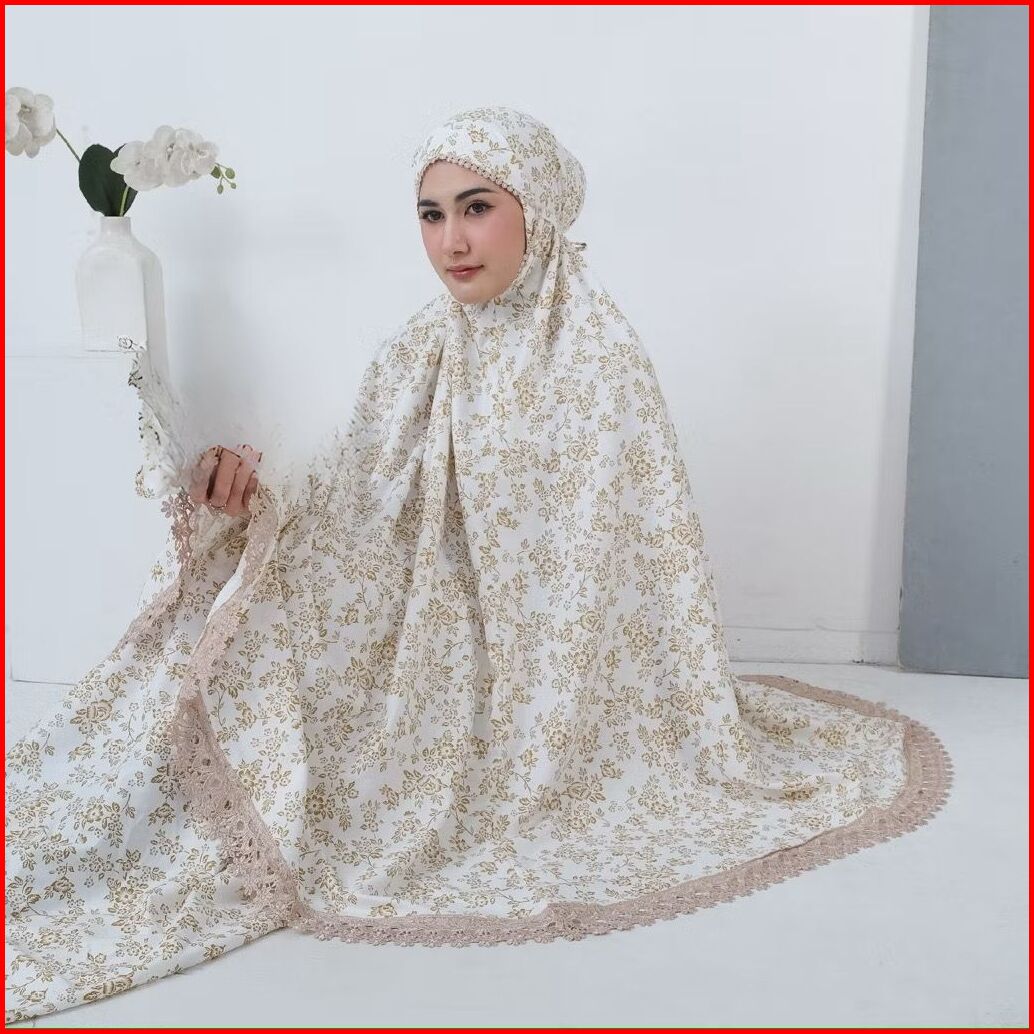 Mukena Dewasa Renda Mewah Sutra Milo Prada Bahan Katun Super Foil Premium