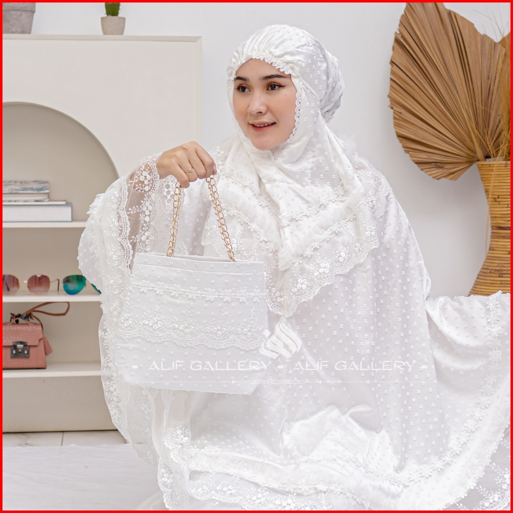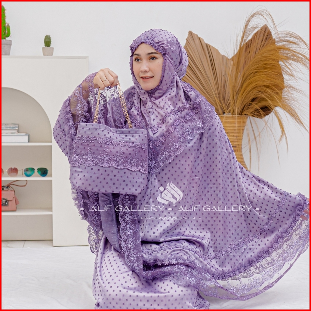Alif Gallery - Mukena Renda Jumbo Ori Sutra Armani Silk Uragiri Premium Shopia Series