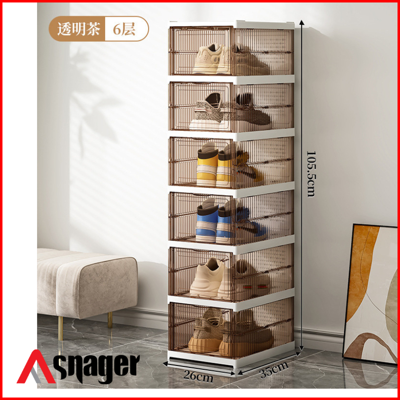 Snager Organizer Rak Sepatu Lipat Plastik Transparan 6 Susun Bertingkat Bukan Antbox
