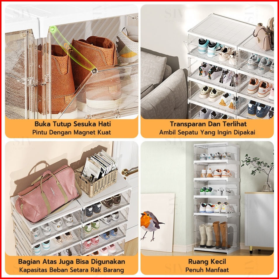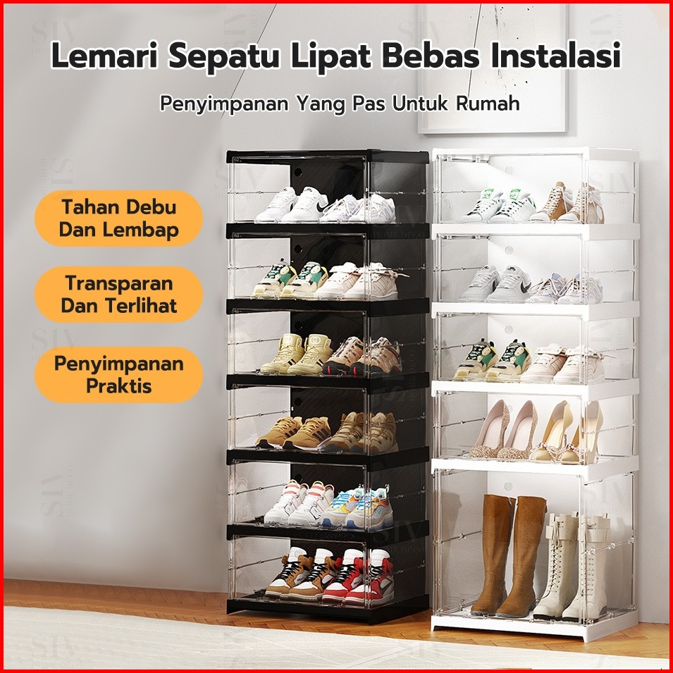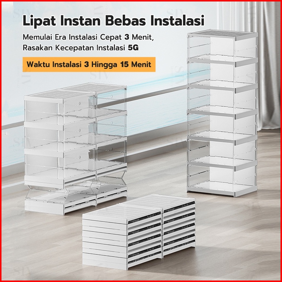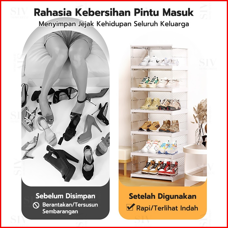 Bebas Instalasisiv Rak Sepatu Lipat Susun Lemari Kotak Sepatu Plastik Tertutup Aesthetic Minimalis