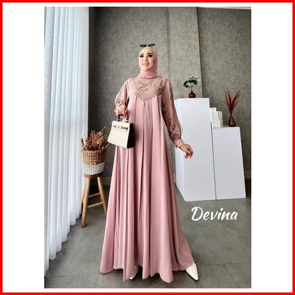 Baju Gamis Brukat Terbaru 2024 Untuk Kondangan Diandra Maxy Dress Brukat Mix Ceruty Premium Full Puring Gamis Seragam Pe